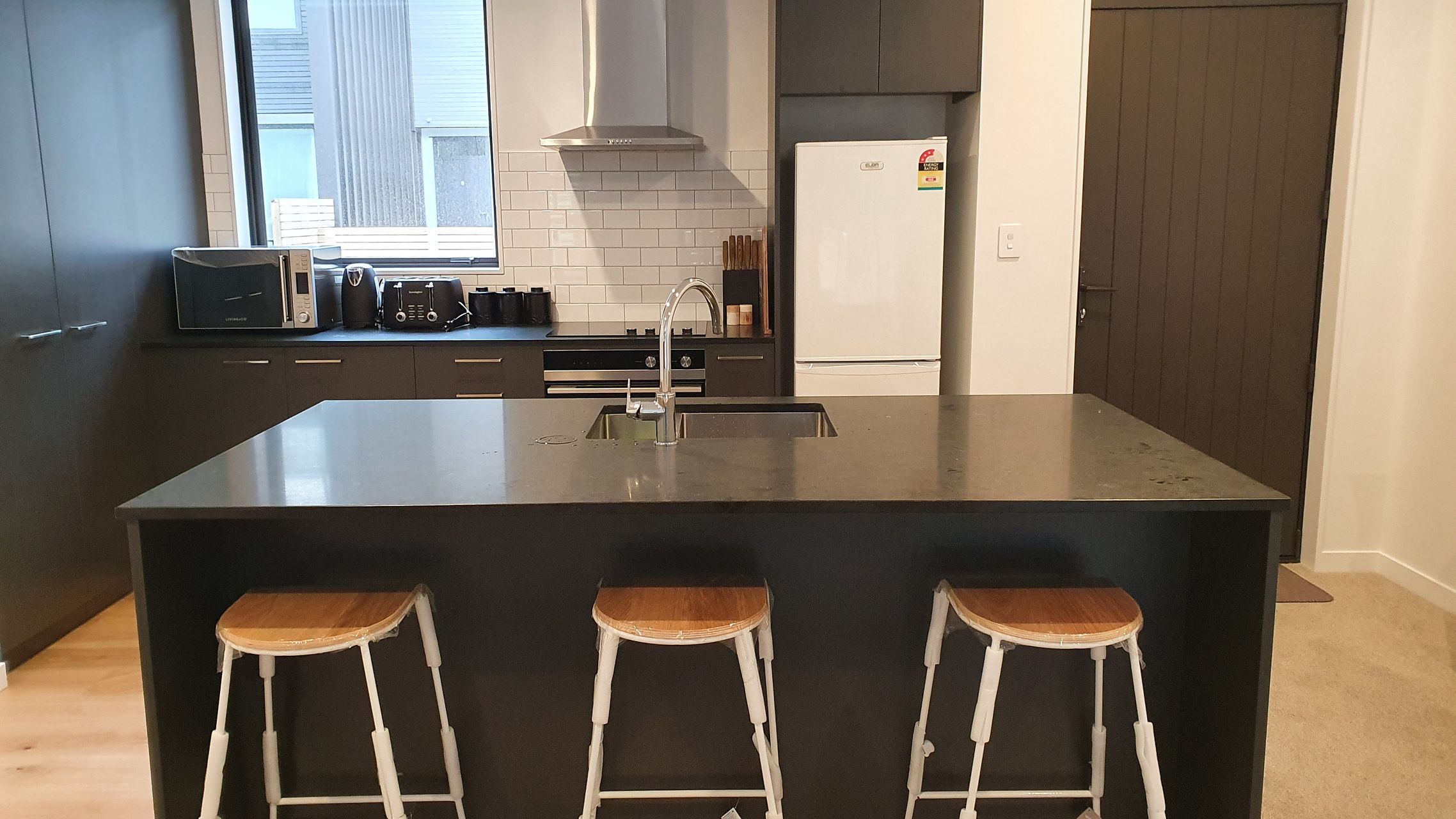 - Stone bench top and tiled splash back;
