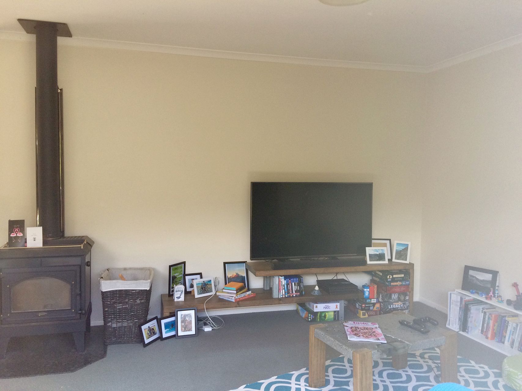 Open plan living area with log burner,