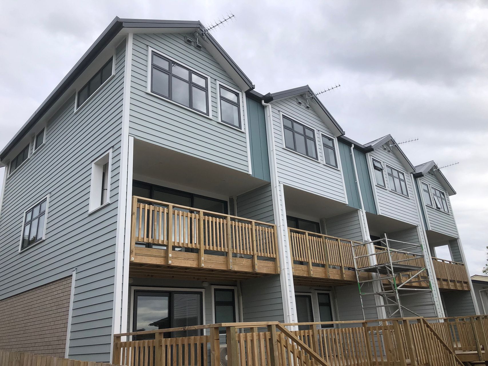 3 bedrooms (2 double, 1 small single or study), spacious single garage and room for a small car in front, 2 separate toilets, 2 sunny decks with outlook over Howick and Stockade Hill from all 3 levels facing the sunset.
