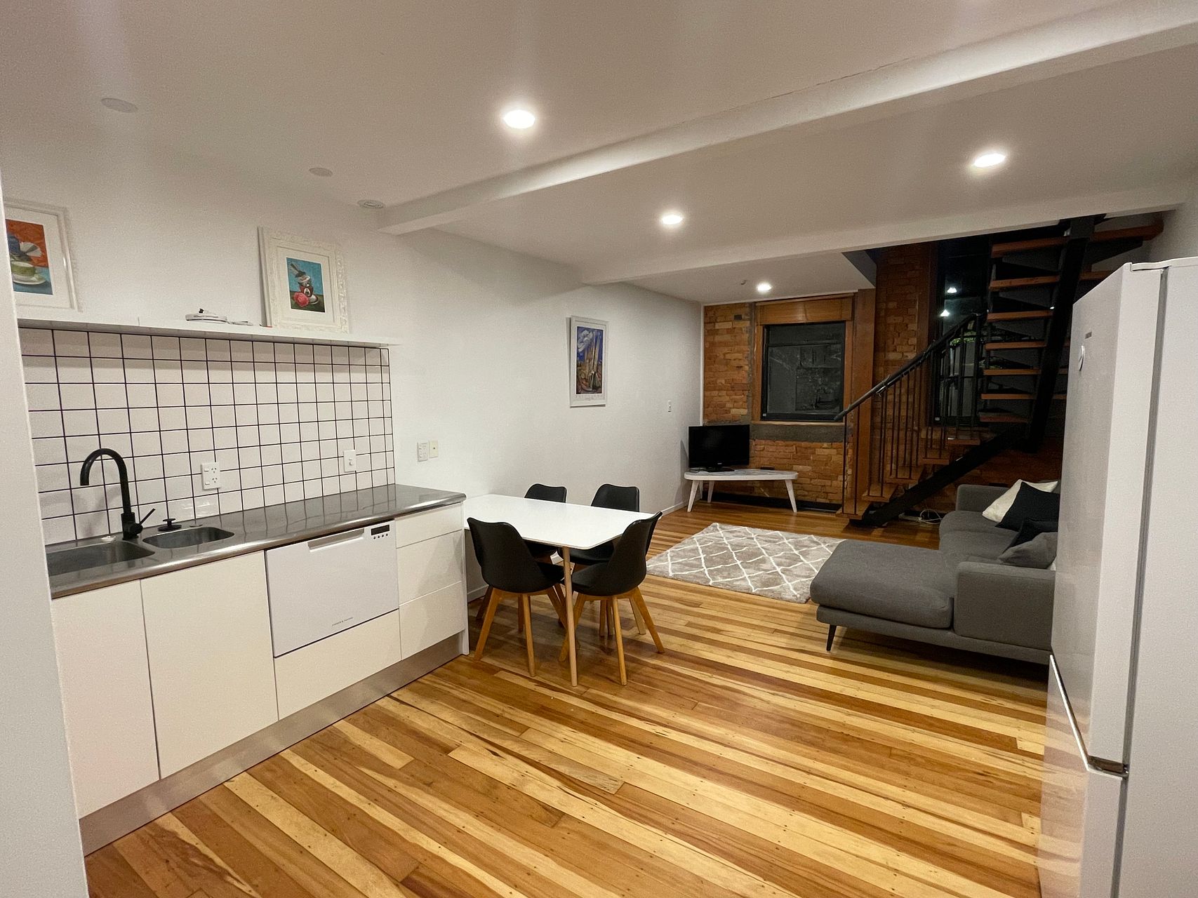 Apartment has a separate office mezzanine for a home study or extra living space. Washing machine and dryer included.