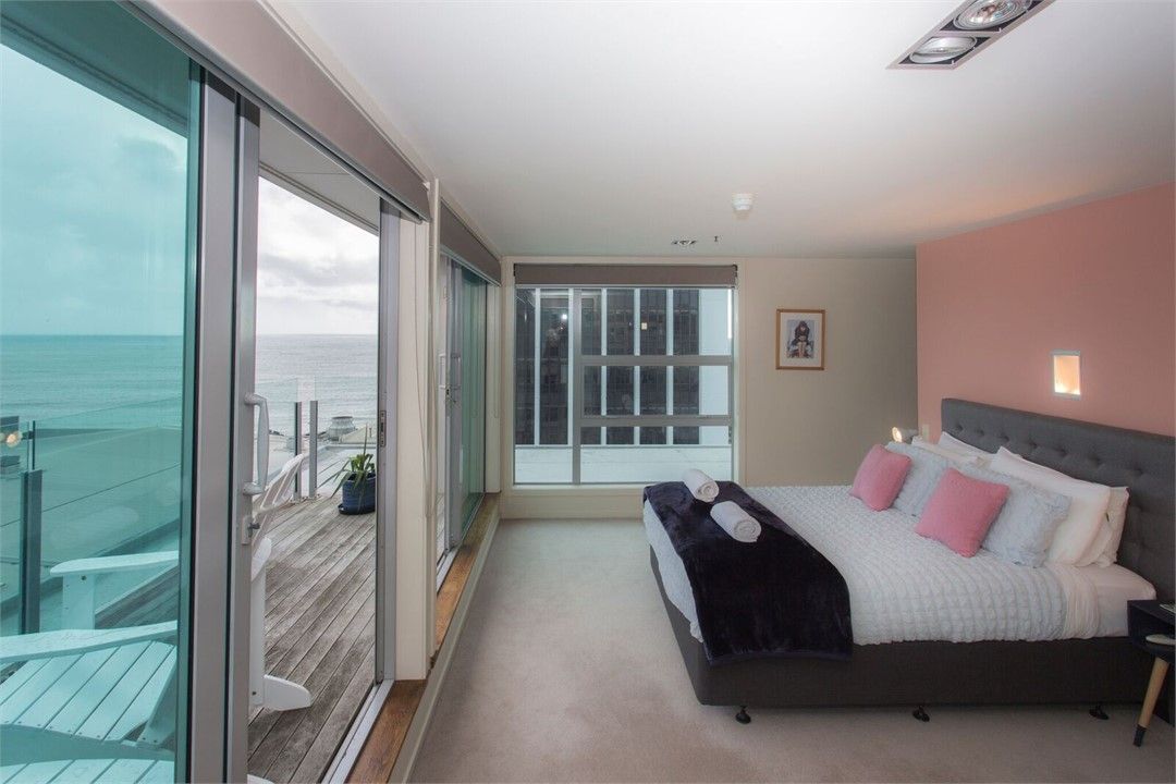 This stunning multi level, Penthouse Apartment is centrally located in the New Plymouth CBD. Spacious and luxurious with panoramic ocean and mountain views. The first level contains open-plan kitchen, dining and lounge areas. Fully equipped kitchen with fridge/freezer, super-sized oven, electric hobs, 2 dishwasher drawers and microwave. A lovely deck opens up from the lounge, to enjoy the spectacular views and sunsets. Self contained laundry complete with washing machine, dryer and laundry tub are tucked away out of sight. A beautiful wall in the lounge, slides back to a spacious area, currently set up as a super-sized bedroom complete with ample wardrobe and storage area and sea views. This could also be used as an extension to the lounge, or set up to work from home. Quality fitted bathroom and toilet also on level one. Take the stairway to Nirvana and on level two you will find two more bedrooms, each with their own deck and spectacular views. The master bedroom has walk-in wardrobe and a stunning ensuite with large walk-in shower, 2 shower heads, beautiful bath, double vanity and toilet. The apartment features ample storage, high-end quality fittings, block-out blinds in all bed-rooms, security video/intercom system, fire alarms/system, 2 secured undercover car-parks. The apartment complex has an in-house gym for your use and two lifts, with top of the range security systems. The Penthouse is peaceful and quiet, you would find it hard to believe you are in the middle of the CBD!