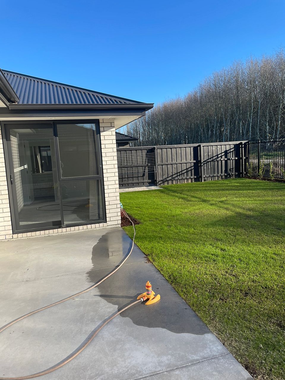 Generous patio with large planter box and easy care back yard (will be fully fenced)