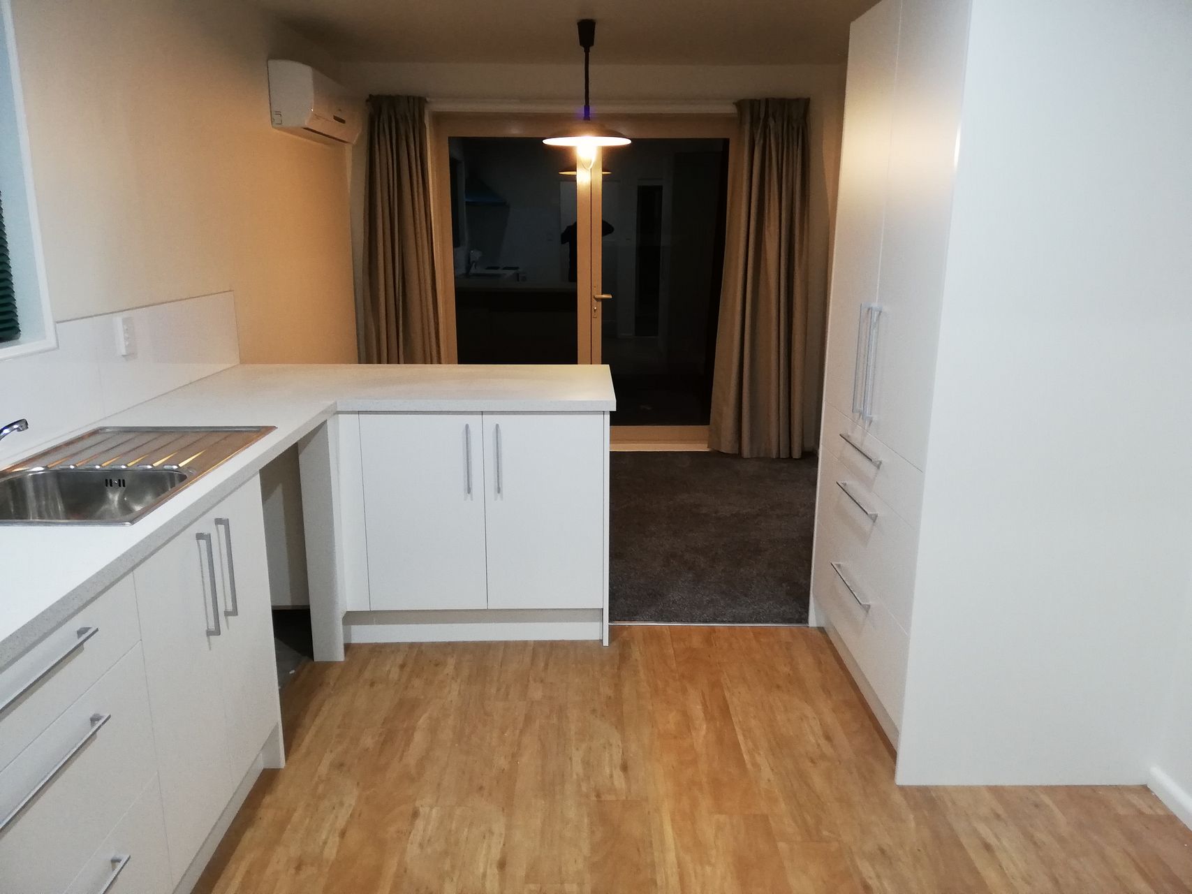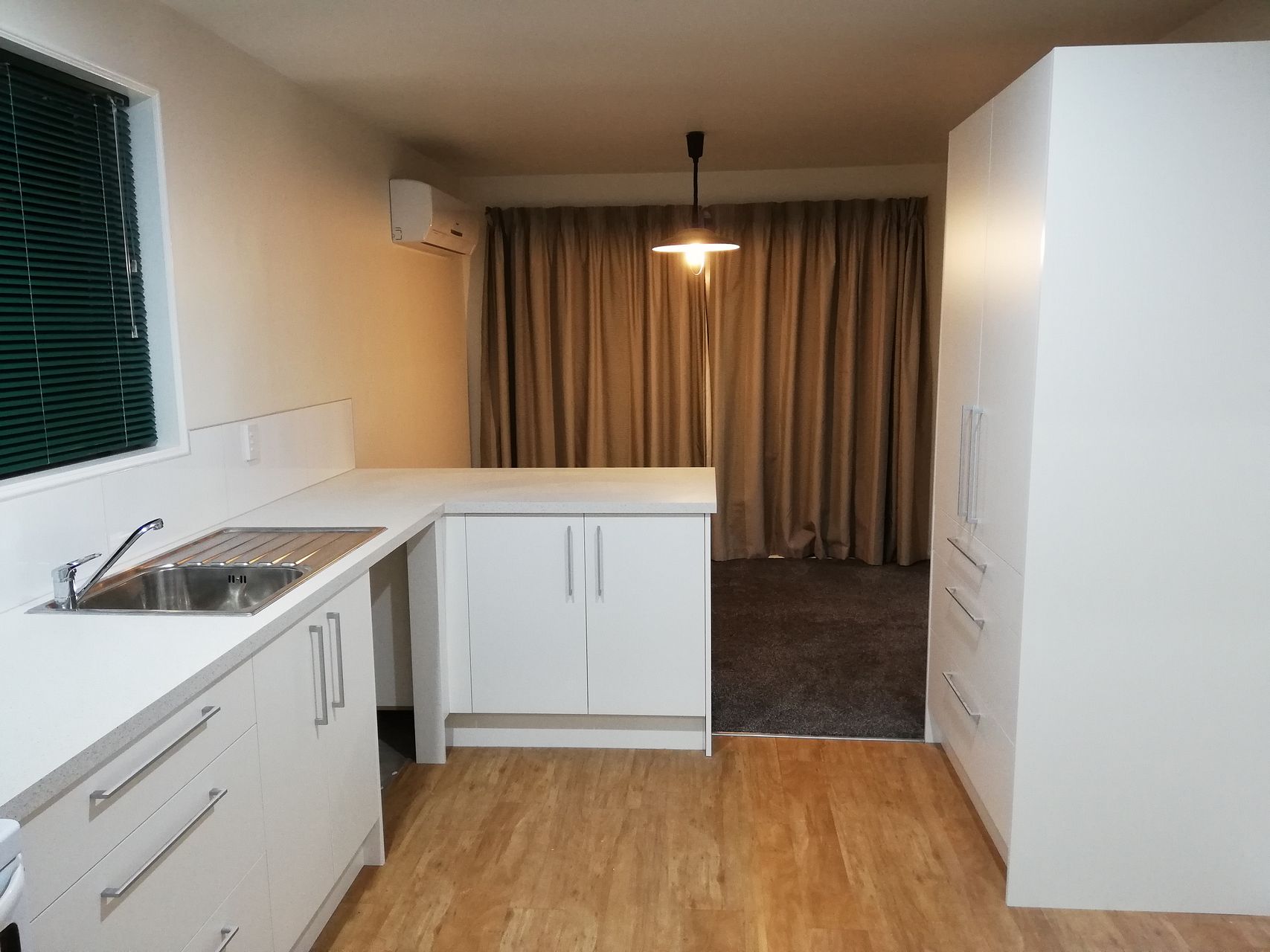 Heat pump in open plan dining room which flows through to lounge.