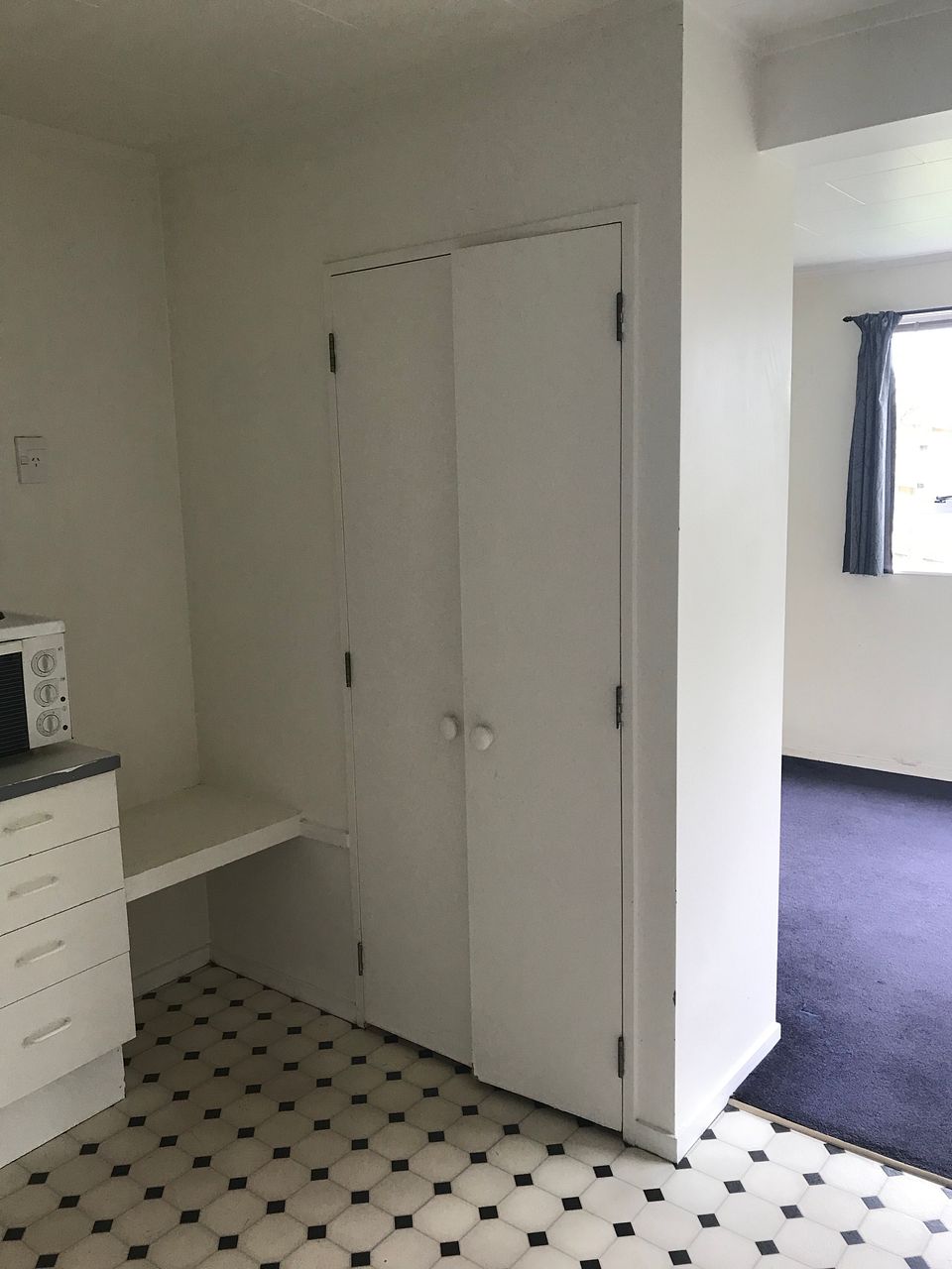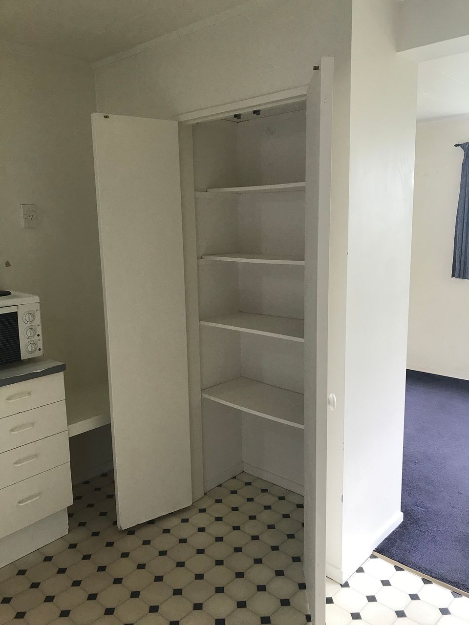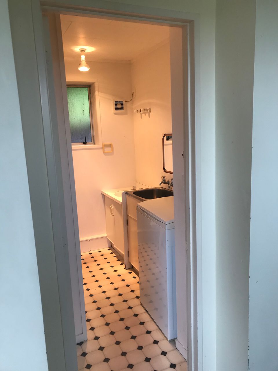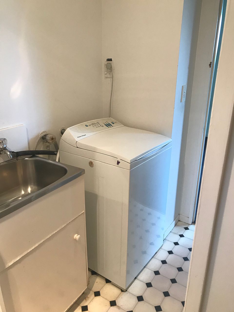 Good storage and spacious, open plan kitchen, that spills out onto a separate lounge and separate bedroom. Laundry with tub.