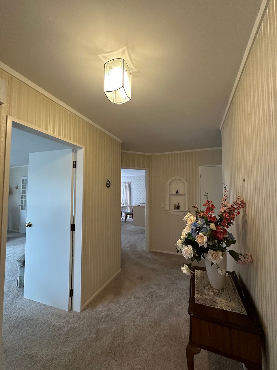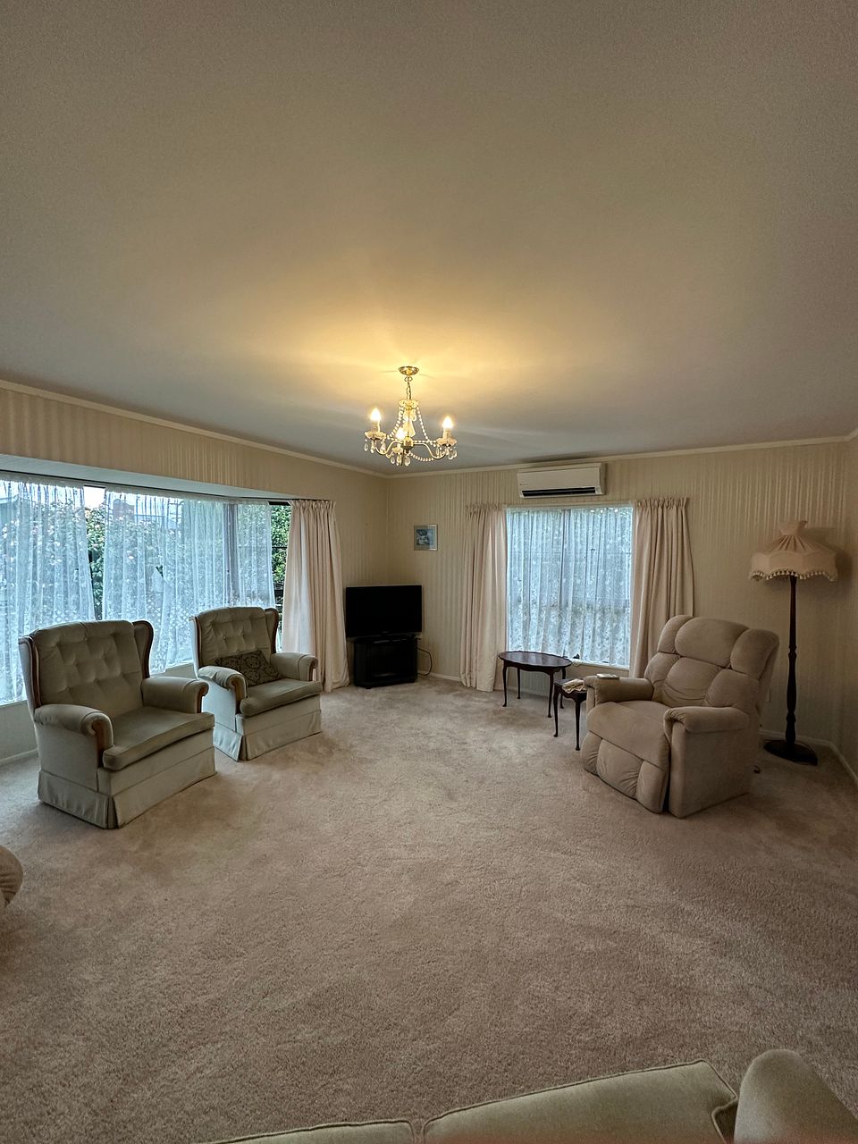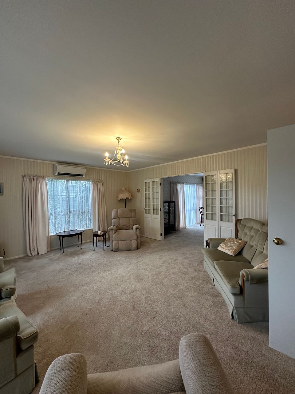 The large open-plan kitchen comes with a new range hood and a relatively new oven, perfect for cooking and entertaining. Enjoy the comfort of a dining area and expansive living room, complemented by HRV and a heat pump for year-round climate control. Newly carpeted throughout, the home also boasts windows with new latches for added security and efficiency. A separate laundry area, which can double as an office, provides versatility.