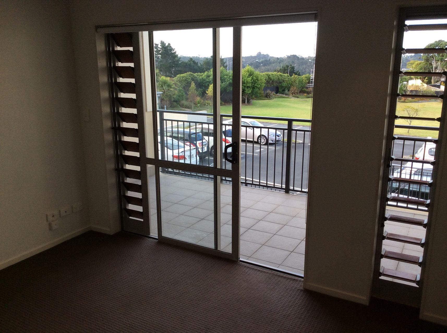 Open plan living with ranch slider leading out to a large balcony from the lounge.