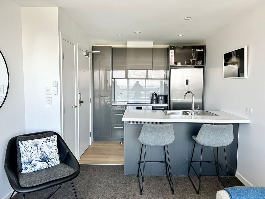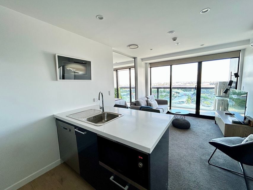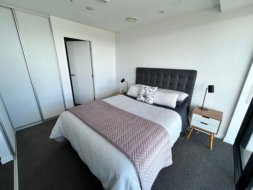 This apartment is located on the 10th floor of the Lakewood Plaza Apartment Complex. It is a modern, fully furnished one bedroom apartment, with one bathroom in the heart of Manukau City. Consisting of a brand new kitchen with quality Bosch appliances (oven, cooktop, rangehood, dishwasher, microwave and fridge) along with a Bosch washing machine and dryer. Also furnished with a Queen size bed and headboard, storage credenza, 2 seater sofa, barstools, coffee table, occasional chair, bedside tables, wardrobe, storage shelves and television all for your use.