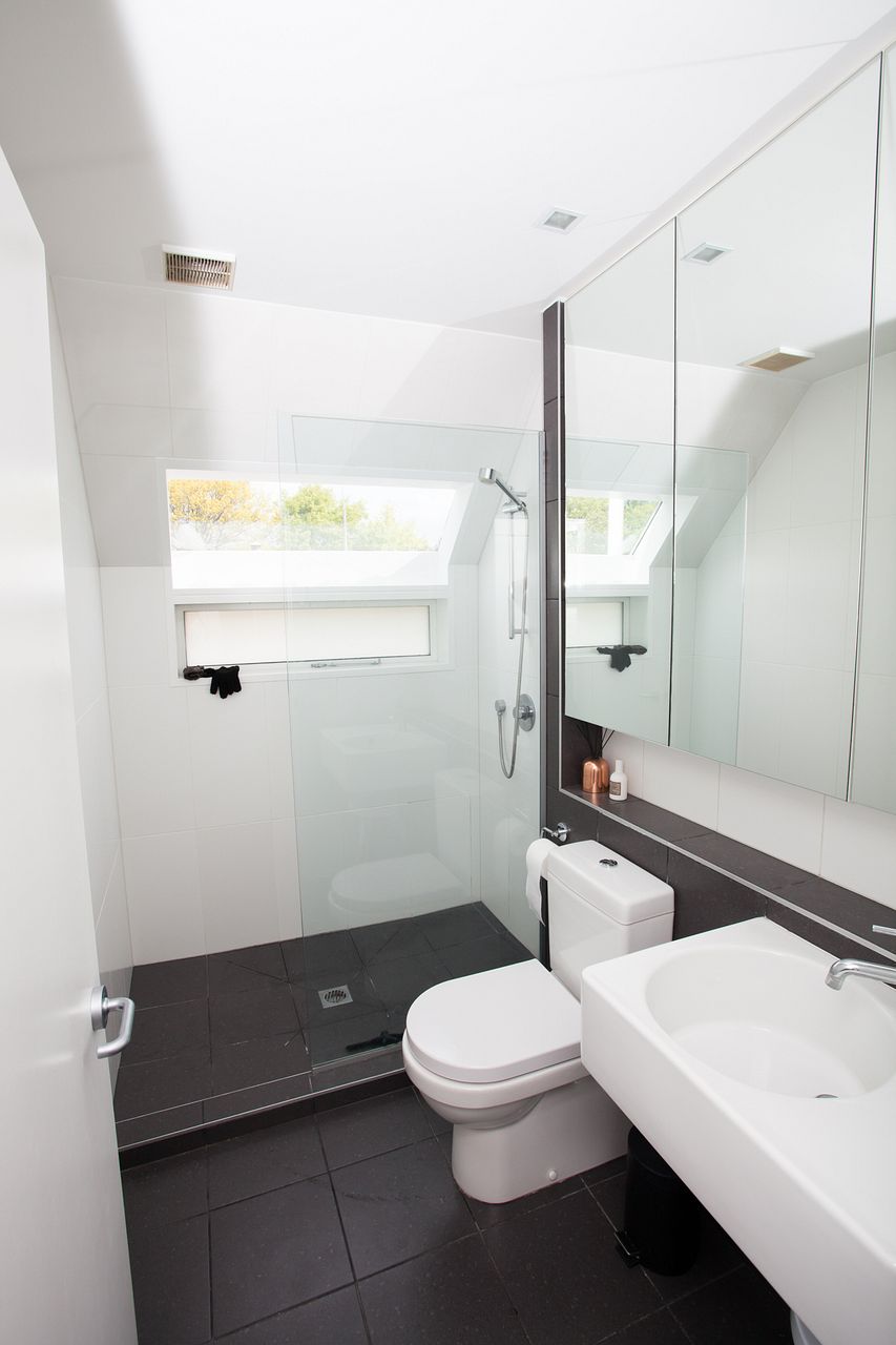 * Modern bathroom with a walk-in shower
