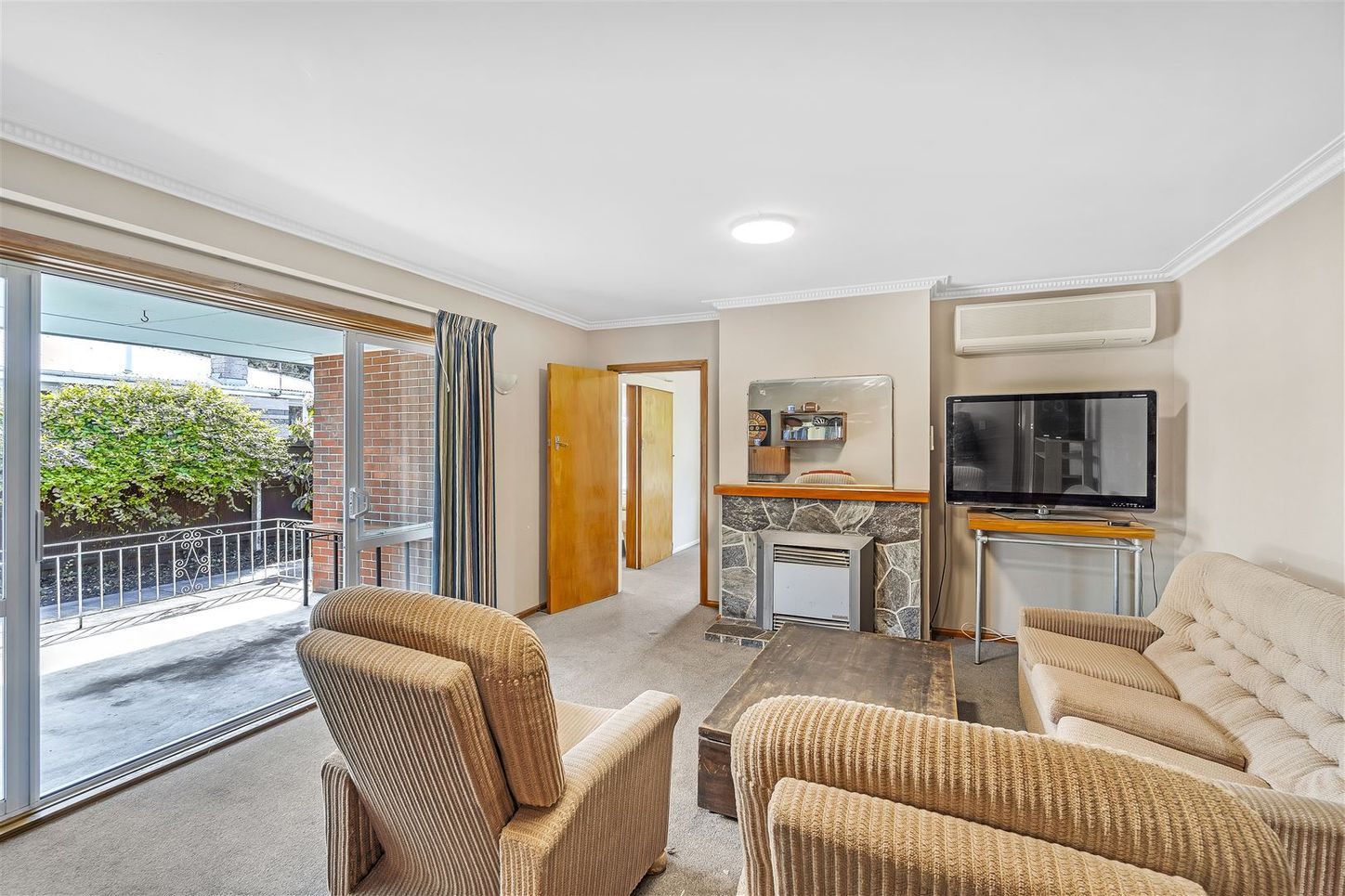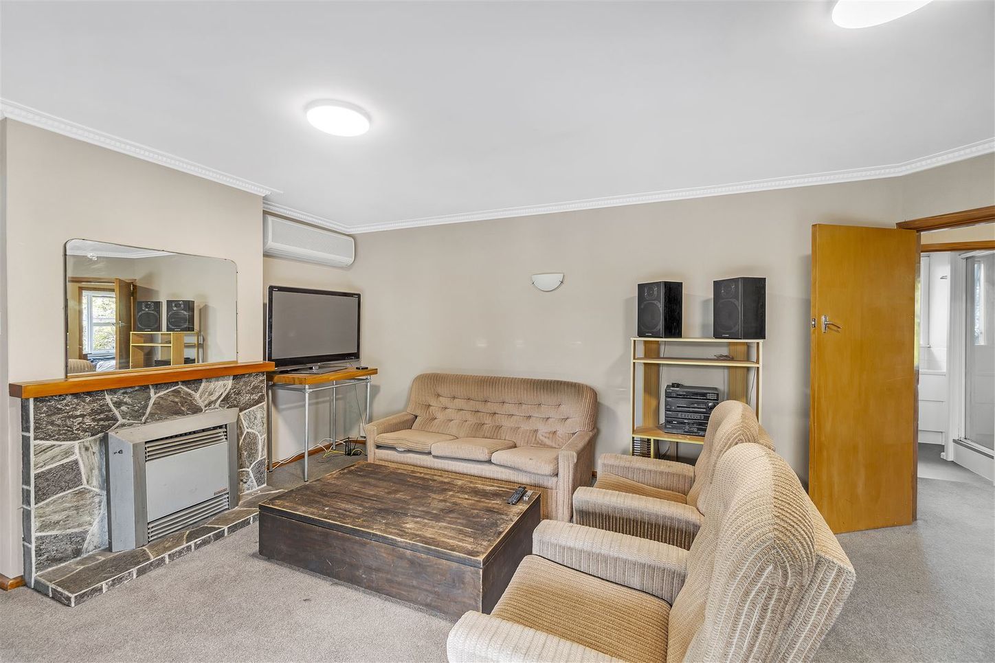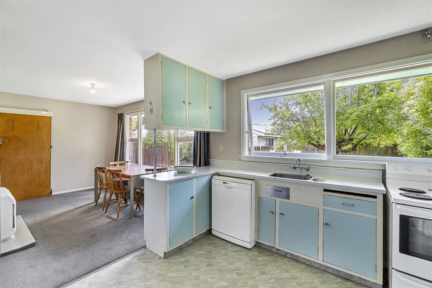 The kitchen has a dishwasher. There are two air conditioners, one in the lounge and one in the dining / kitchen area.