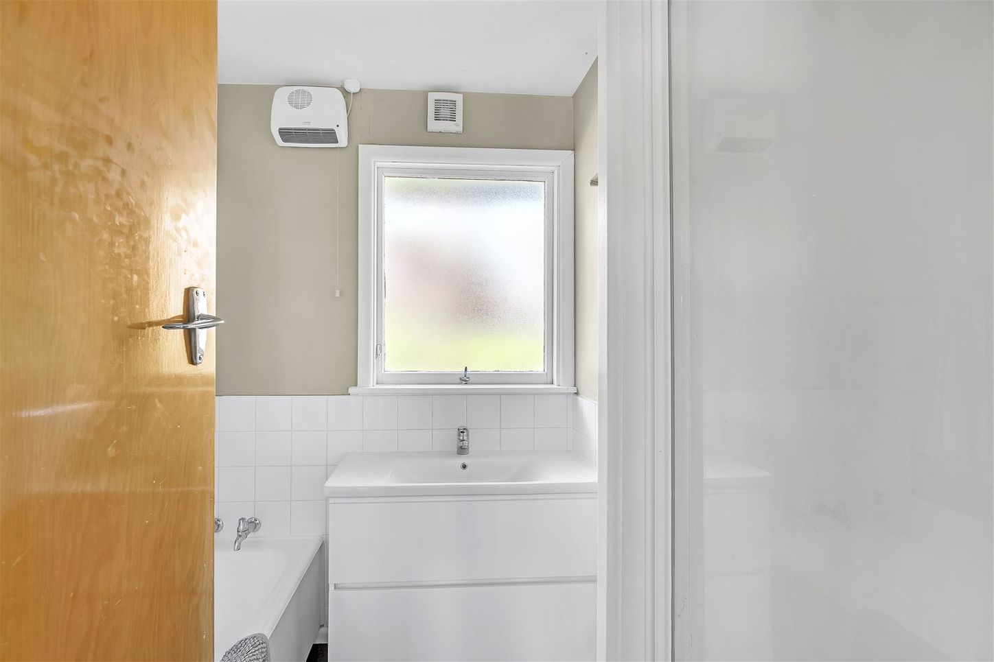 Bathroom has a separate shower and bath. The toilet is separate.