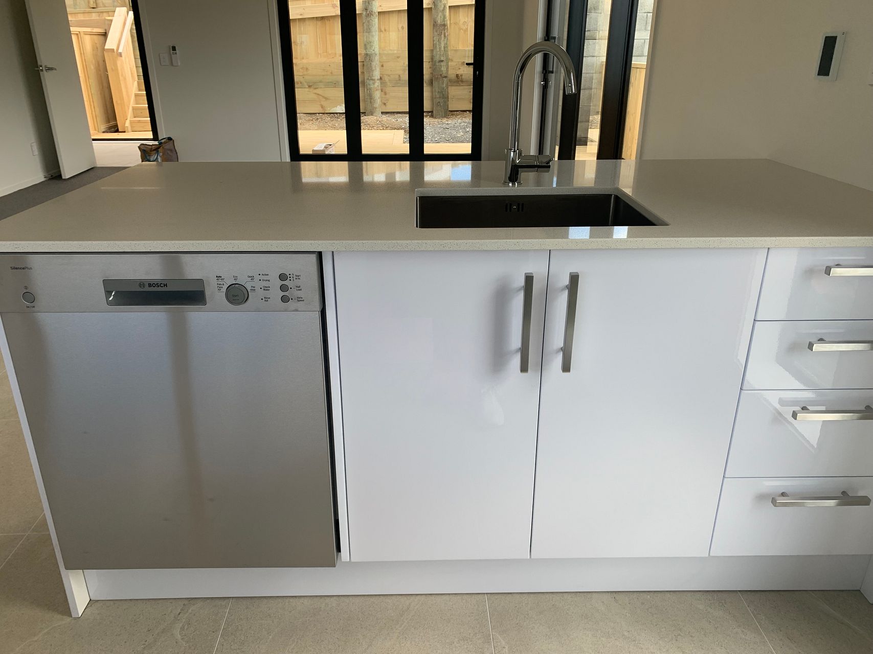 Bosch dishwasher; Bosch cooktop and exactor and good storage space.
