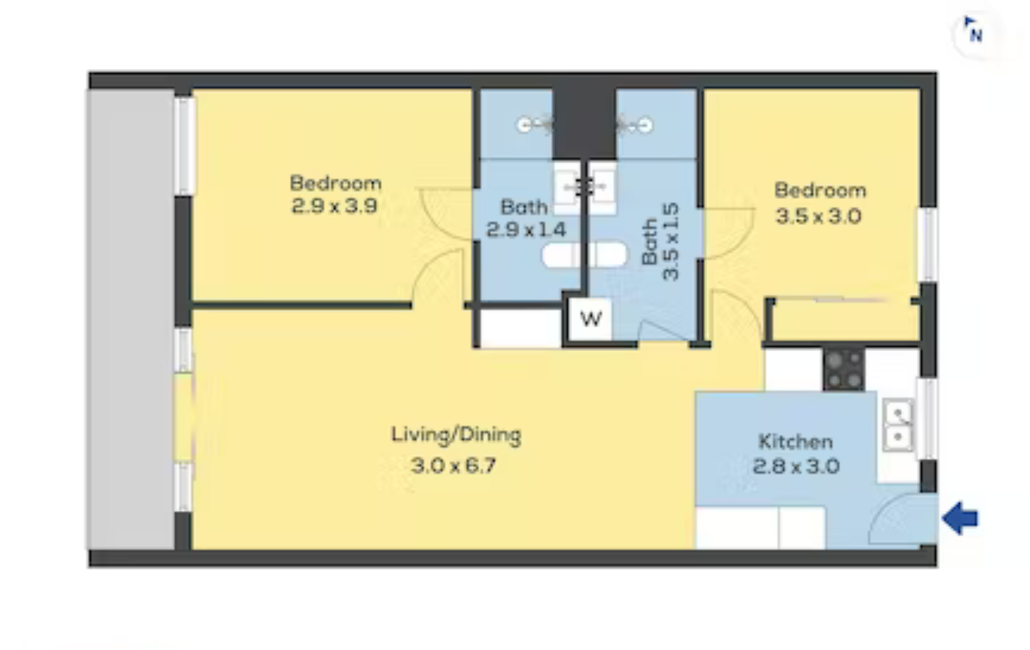 2 generous bedrooms with 2 bathrooms (one ensuite and one semi-ensuite)