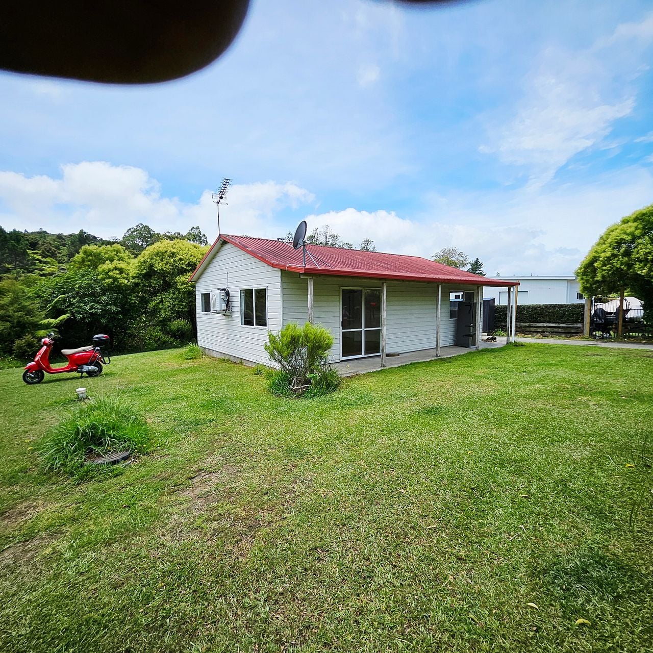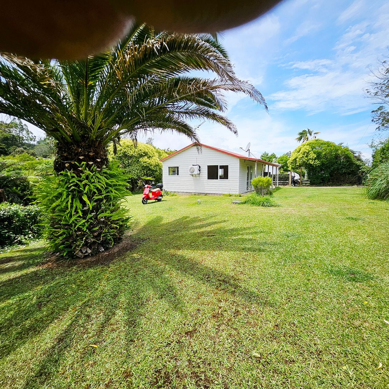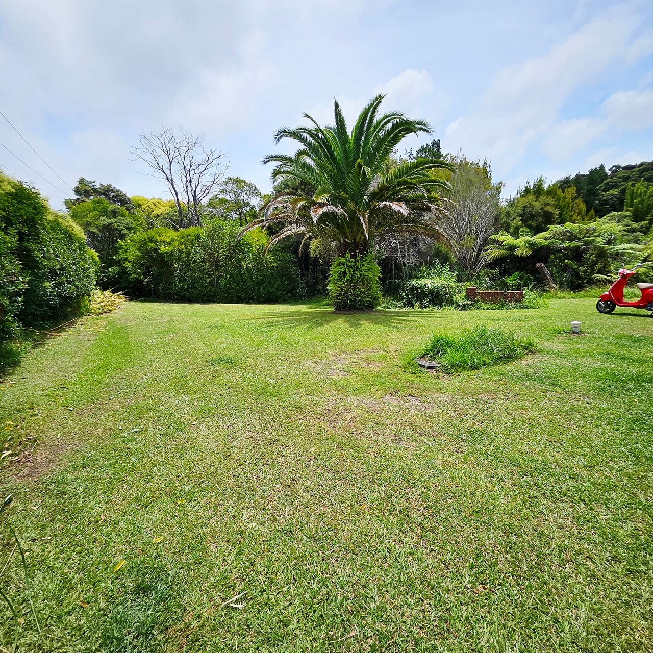 The gardens are substantial and mainly lawn with bush.