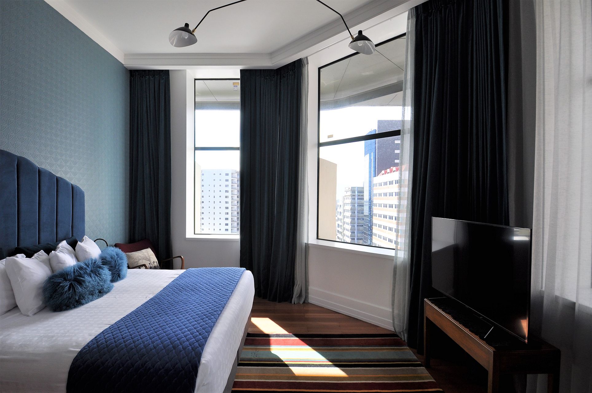 Luxurious top floor corner, sun-drenched renovated apartment. Views of the harbour and St Patrick's Cathedral. Located within the downtown Art Deco landmark, the Heritage Hotel.