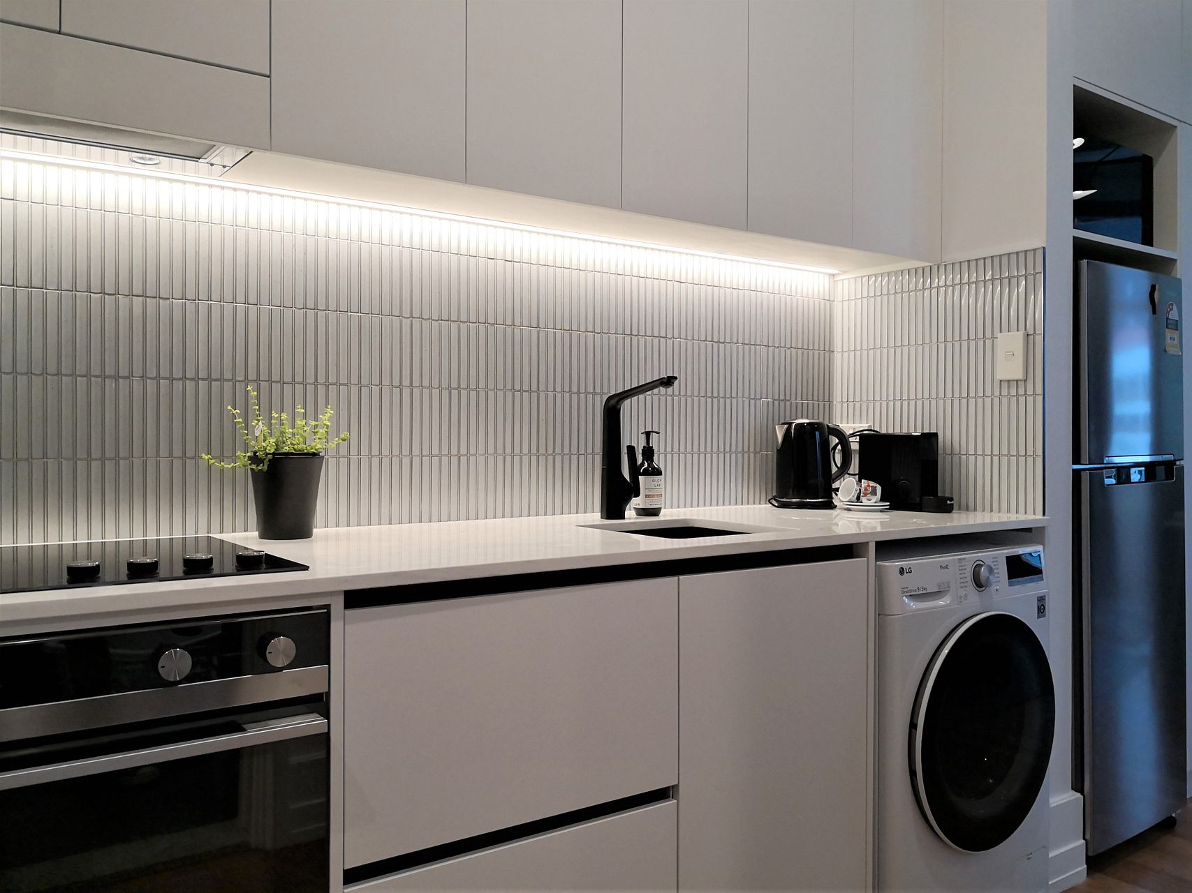 Fully functional kitchen with all quality appliances & accessories. Oven, 4 burner hob, microwave, dishwasher, washer/dryer, fridge/freezer & coffee machine.