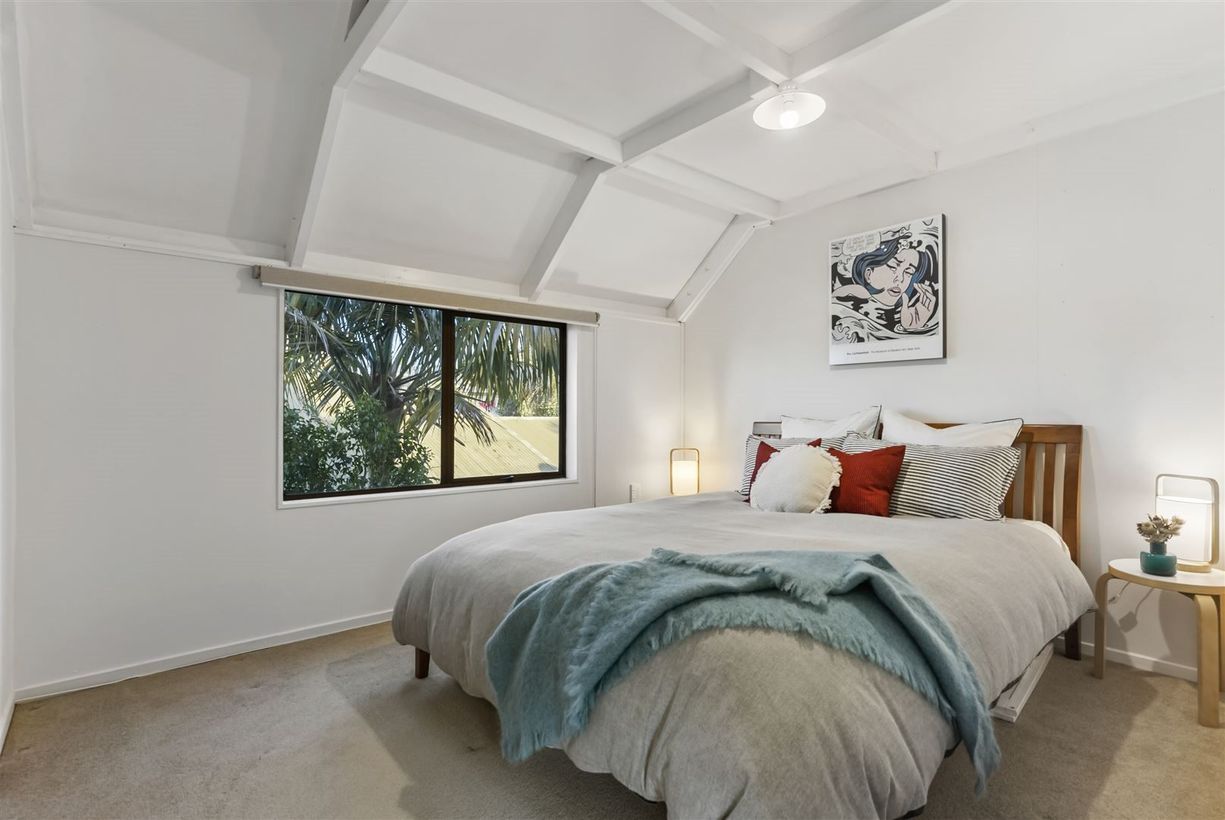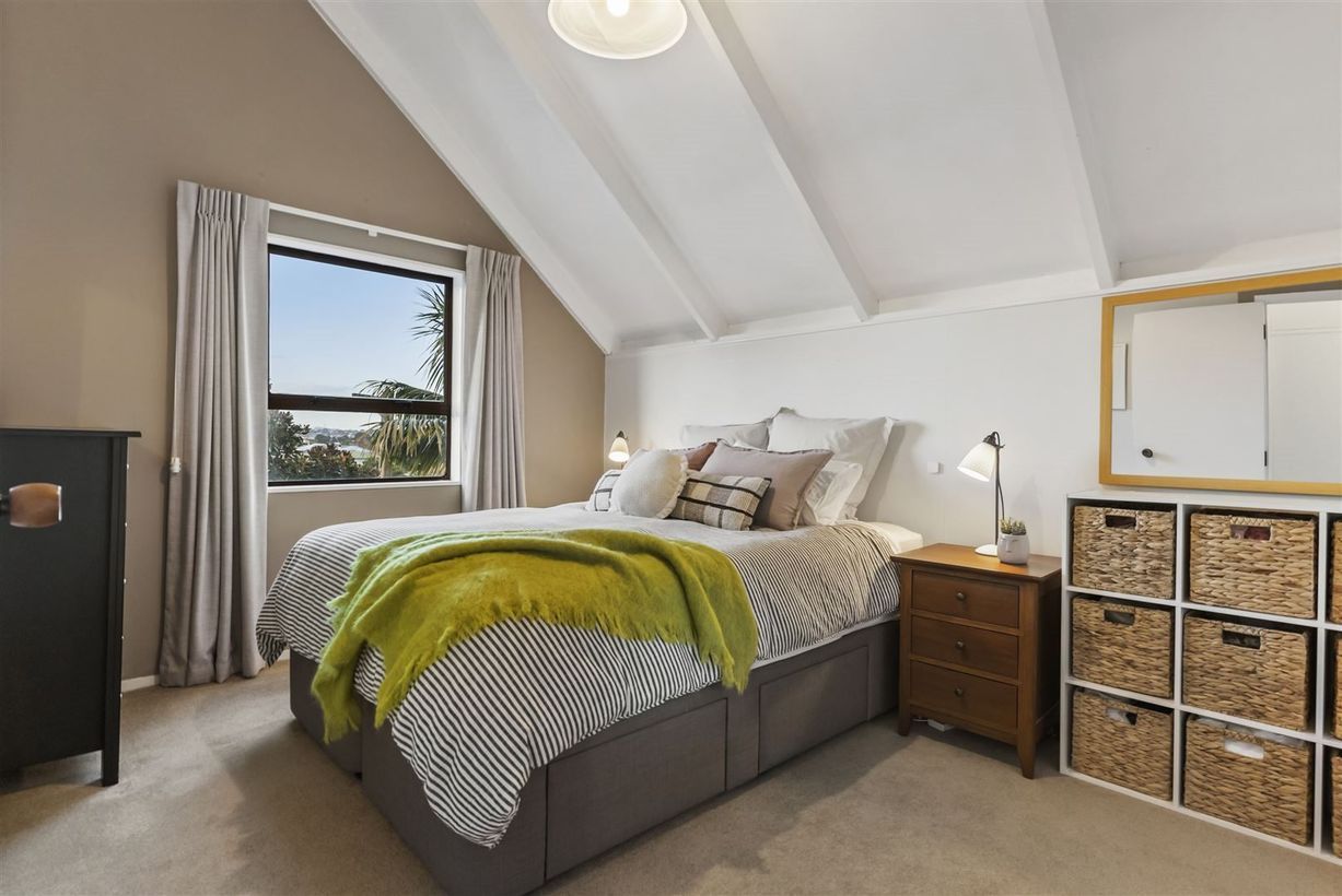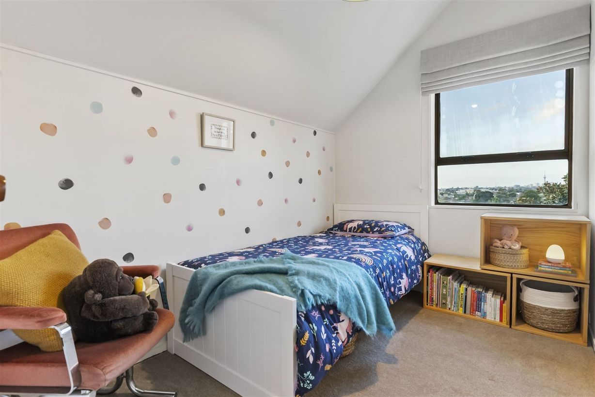 The bedrooms and bathroom are smartly tucked away upstairs, and you can't get past that Auckland City skyline view from two of these rooms !