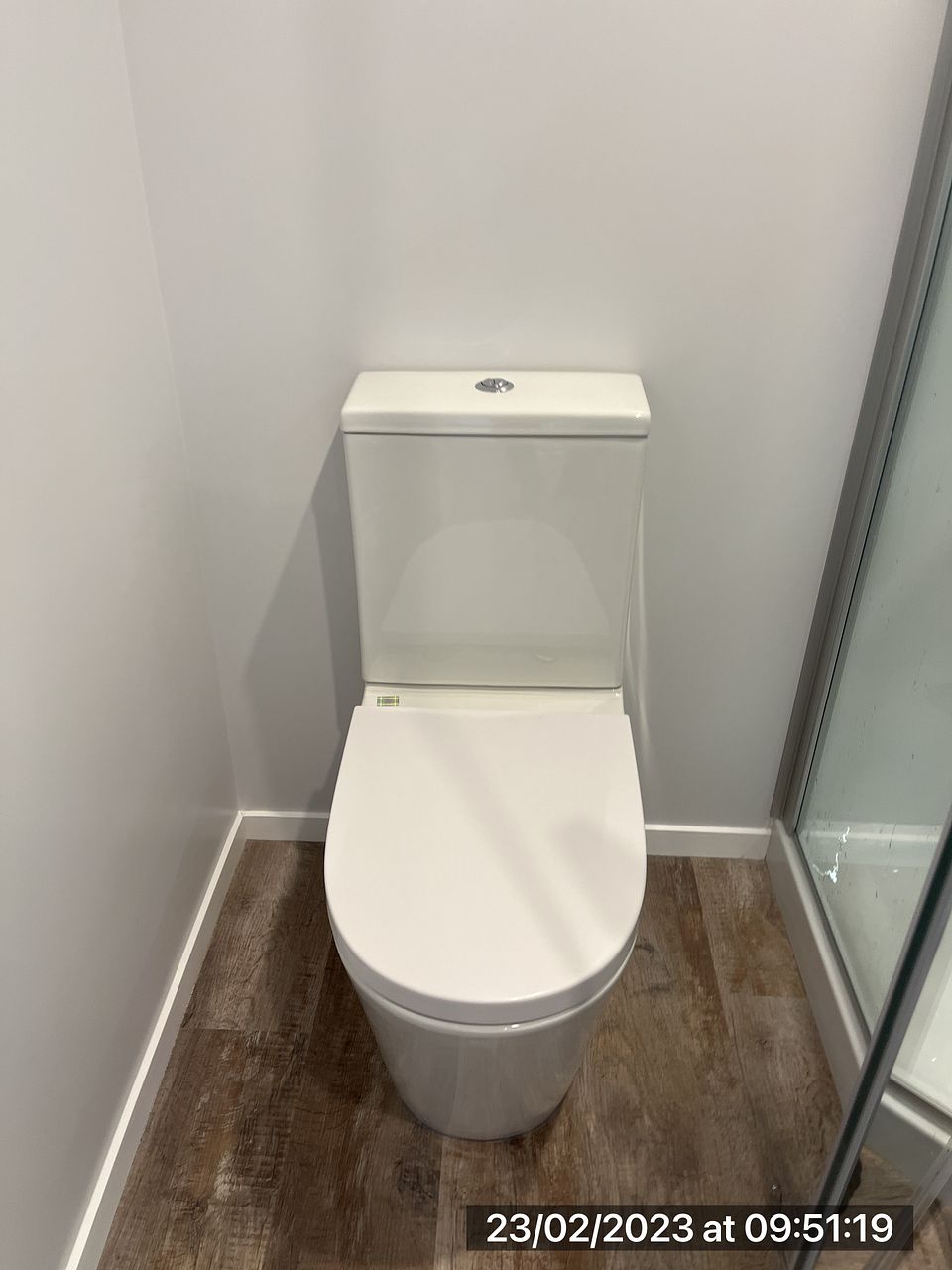 Modern bathroom with shower, vanity, toilet, extractor fan and heated towel rail