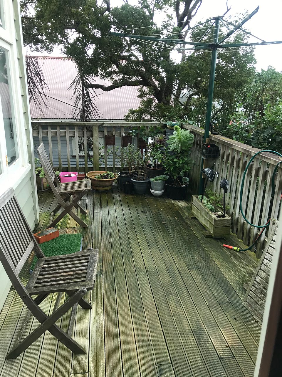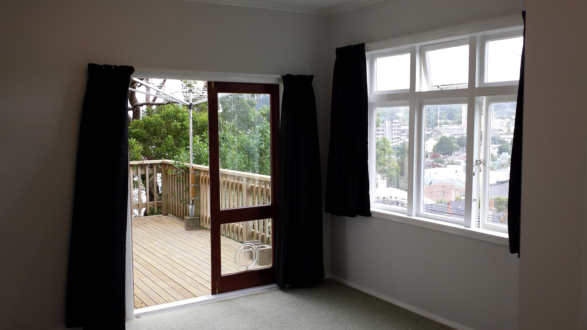 Downstairs flat above Adelaide Rd. Healthy Homes compliant, short walk to countdown, hospital, newtown shops. Cat ok (cat door). Good morning sun. 1 metre gap between ceiling and upstairs flat so less noise transmission from upstairs. Washing machine, fridge, gas stove/oven (& on demand gas hot water) and washing line supplied. 3 flatmates $520 pw (prefer two people). Some photos are older, most recent tenants have brought a house and previous tenants were there around 5 years, the deck needs waterblasting! :)