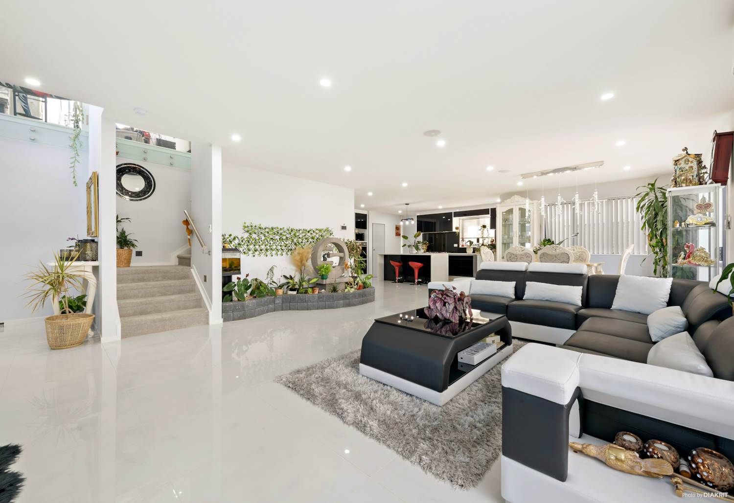 This home offers 2 large lounges, with the downstairs lounge featuring an integrated speaker system and the upstairs lounge with a fixed projector and smart board system! With perhaps one of the biggest kitchens on the market, the master-chef ready kitchen features all the bells and whistles, including a large walk in pantry, making food preparation, from breakfast to buffet, easy as pie! All top-quality appliances are used with no expense spared. No clutter, all convenience!