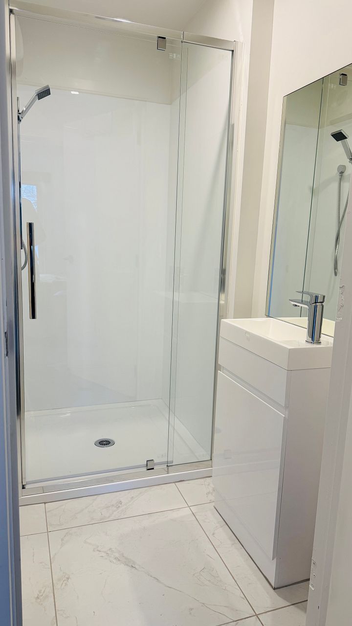3 fully renovated tiled bathrooms, 3 toilets (2 separated), very efficient heatpump hot water with large cylinder (1/4 of standard power bill), 4 heat pumps, new modern kitchen, two fridges, microwaves, toasters.. everything you need.