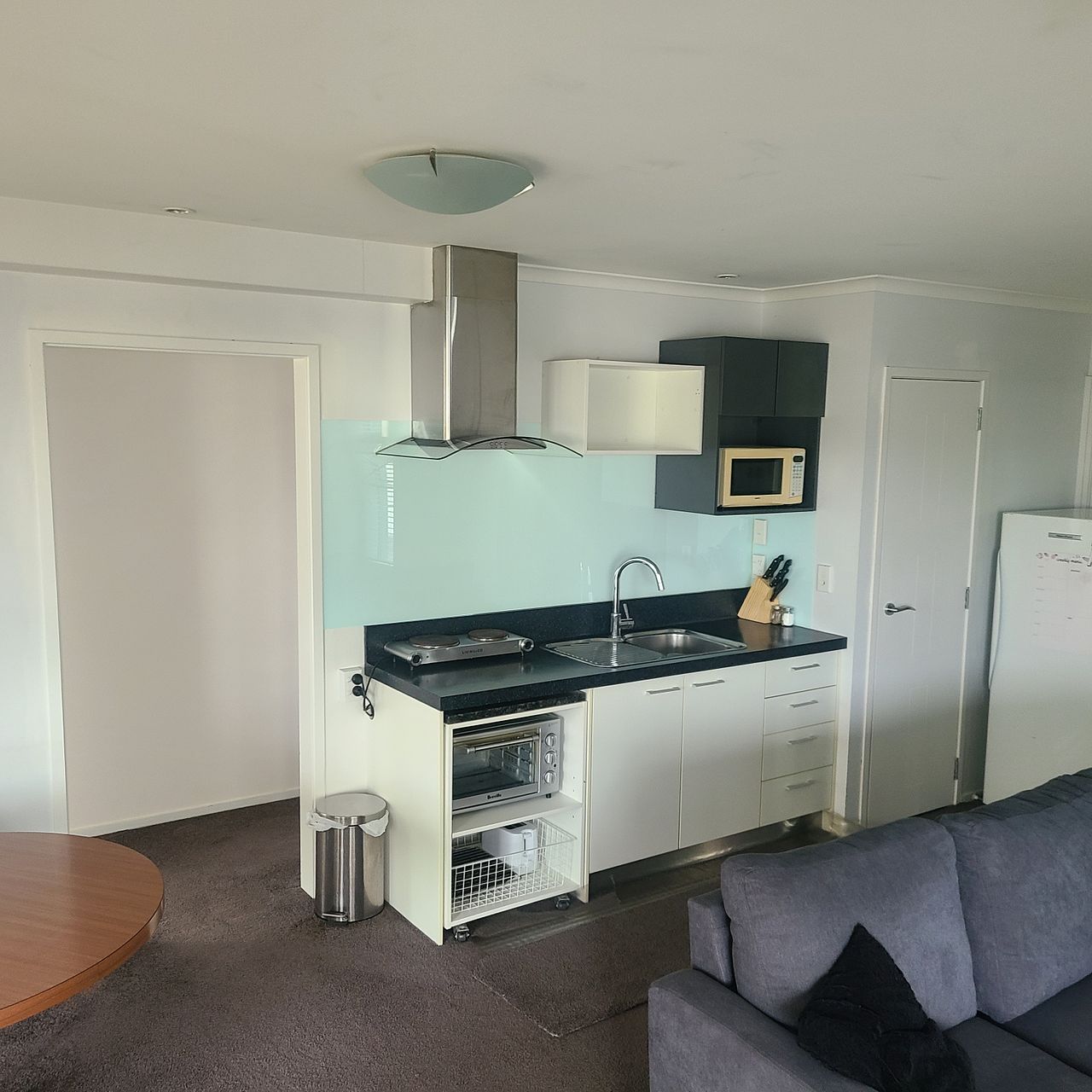 • Kitchenette: Includes extractor fan, full-sized pantry, full-sized fridge, share of standup freezer. Appliances: bench top oven, hot plates, microwave, electric wok.