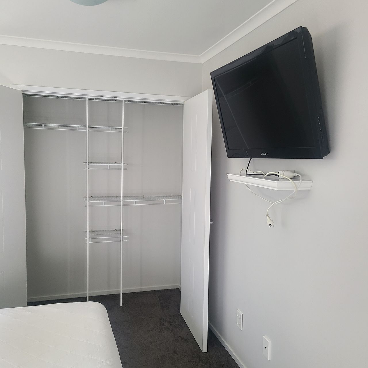 • Bedroom: Comfortable sized bedroom with a full wardrobe and TV. Queen Bed.