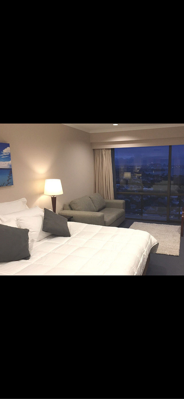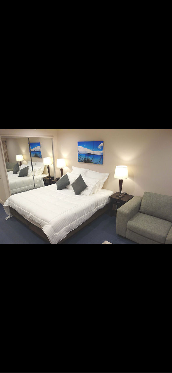 This modern studio apartment is on the 15th floor of the Spencer on Byron so is quiet with spectacular views over the harbour to Auckland City. It is fully furnished and ready to move into. It comes with king sized bed, TV with Freeview, fridge, combined microwave/oven, ceramic induction hotplate, washing machine/dryer, all cutlery, crockery, kitchen utensils, linen, towels, etc. Its air conditioned so cool in Summer and warm in Winter. Rent includes electricity and water.