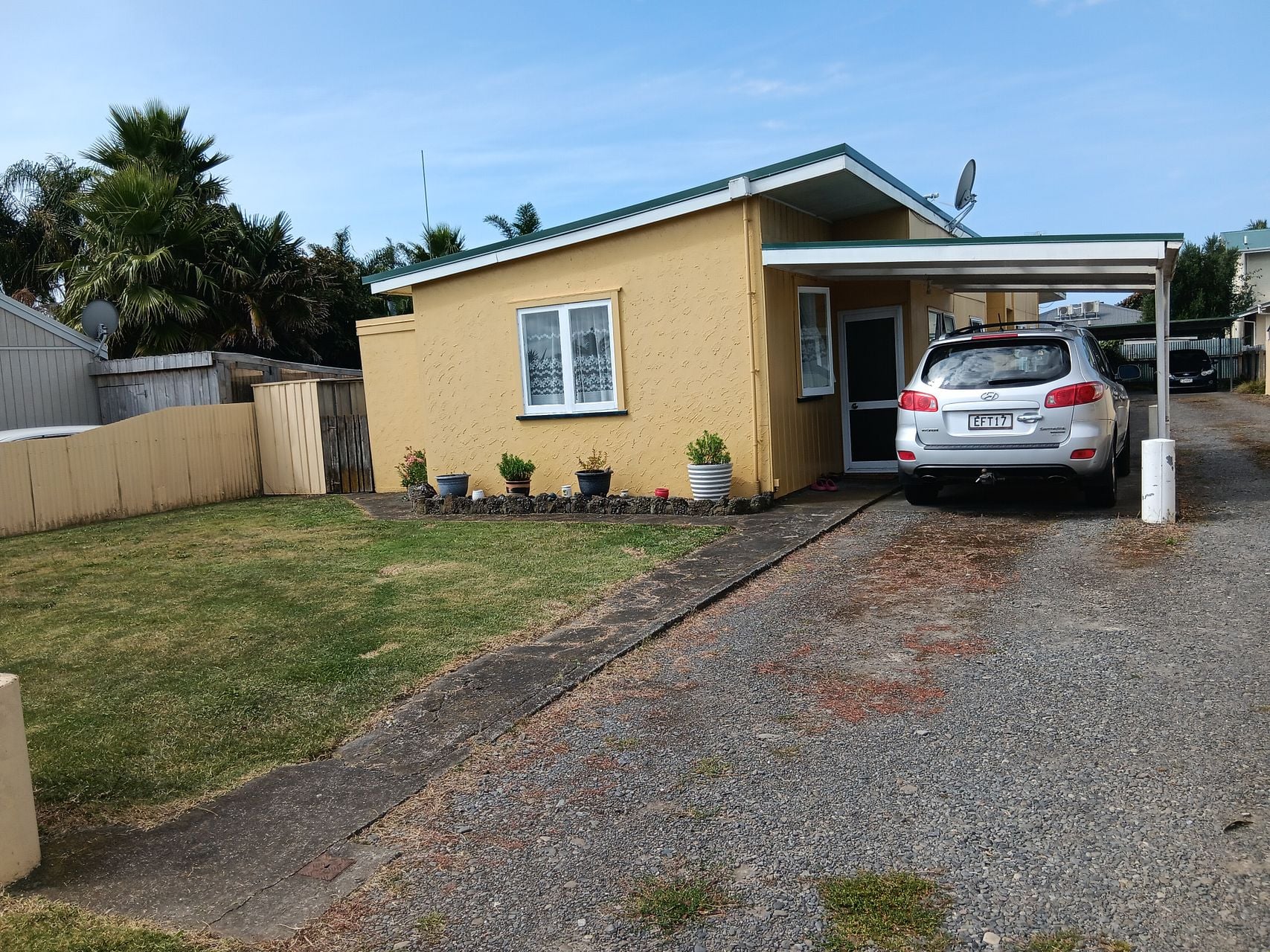 A sunny, unfurnished, two-bedroom flat and carport near the beach at Haumoana, Hastings. Rent $395, bond $1185, or a total of $1580 to start.