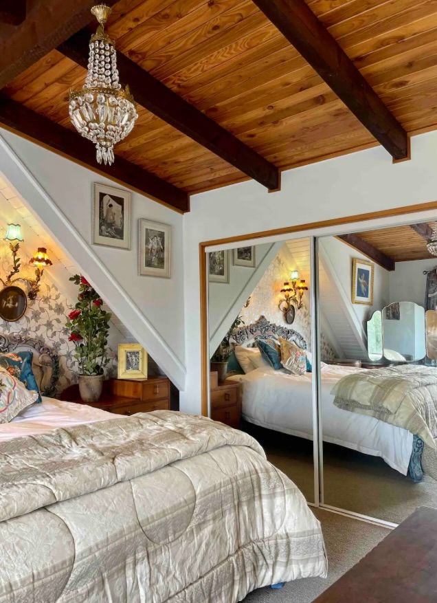Master bedroom upstairs with super king bed, full ensuite bathroom (toilet and shower). Double bedrooms downstairs, one with Queen bed and one with two single beds. All bedrooms have built in wardrobes. Second full bathroom downstairs.