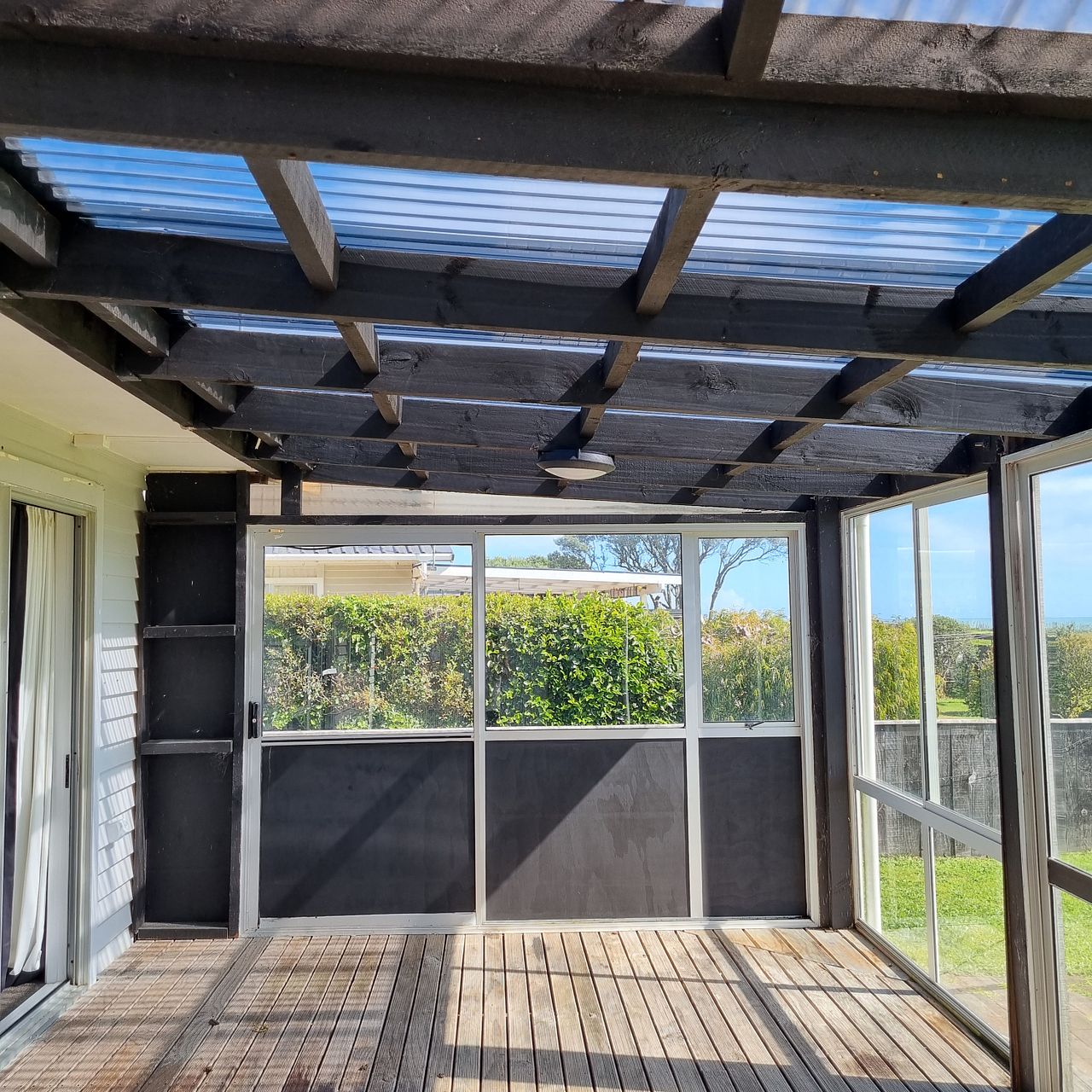 A Large Outdoor area Pergola & Deck facing the Sea