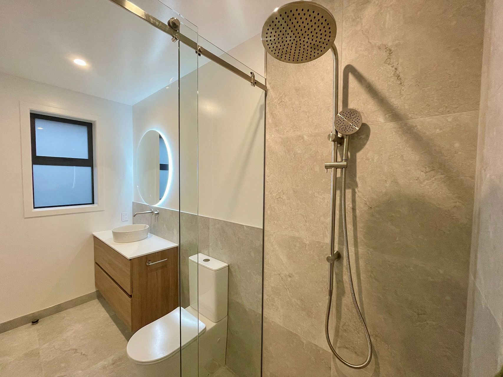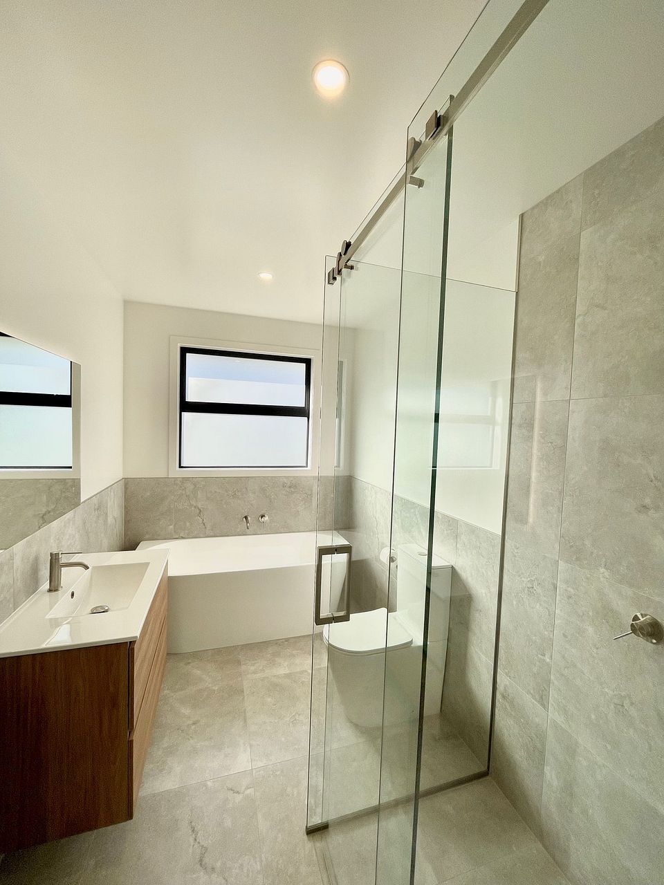 -2 stylish bathrooms, including a private ensuite off the master. Both feature tiled finishes, oversized showers, underfloor heating, fan heaters, and heated towel rails.