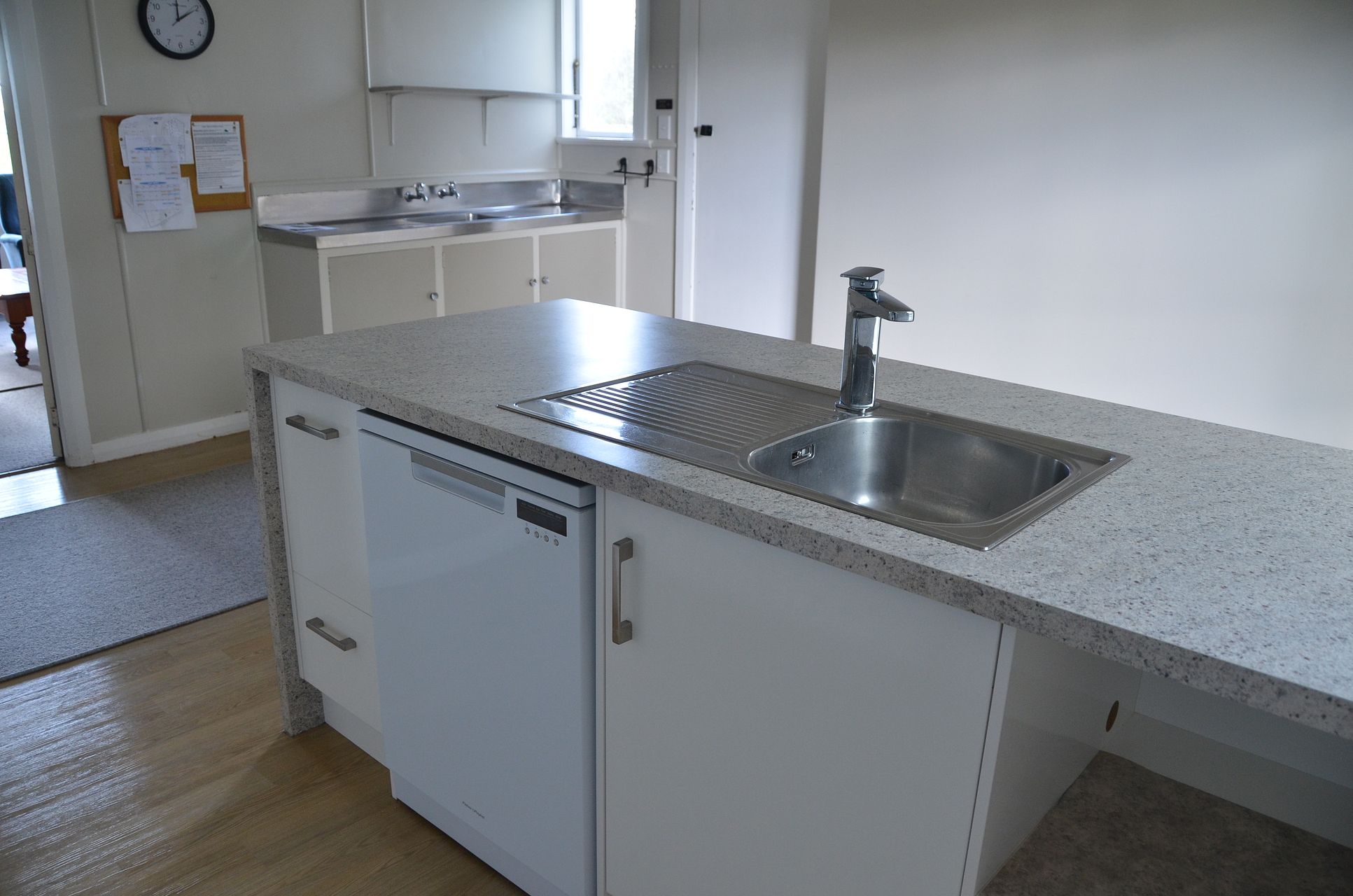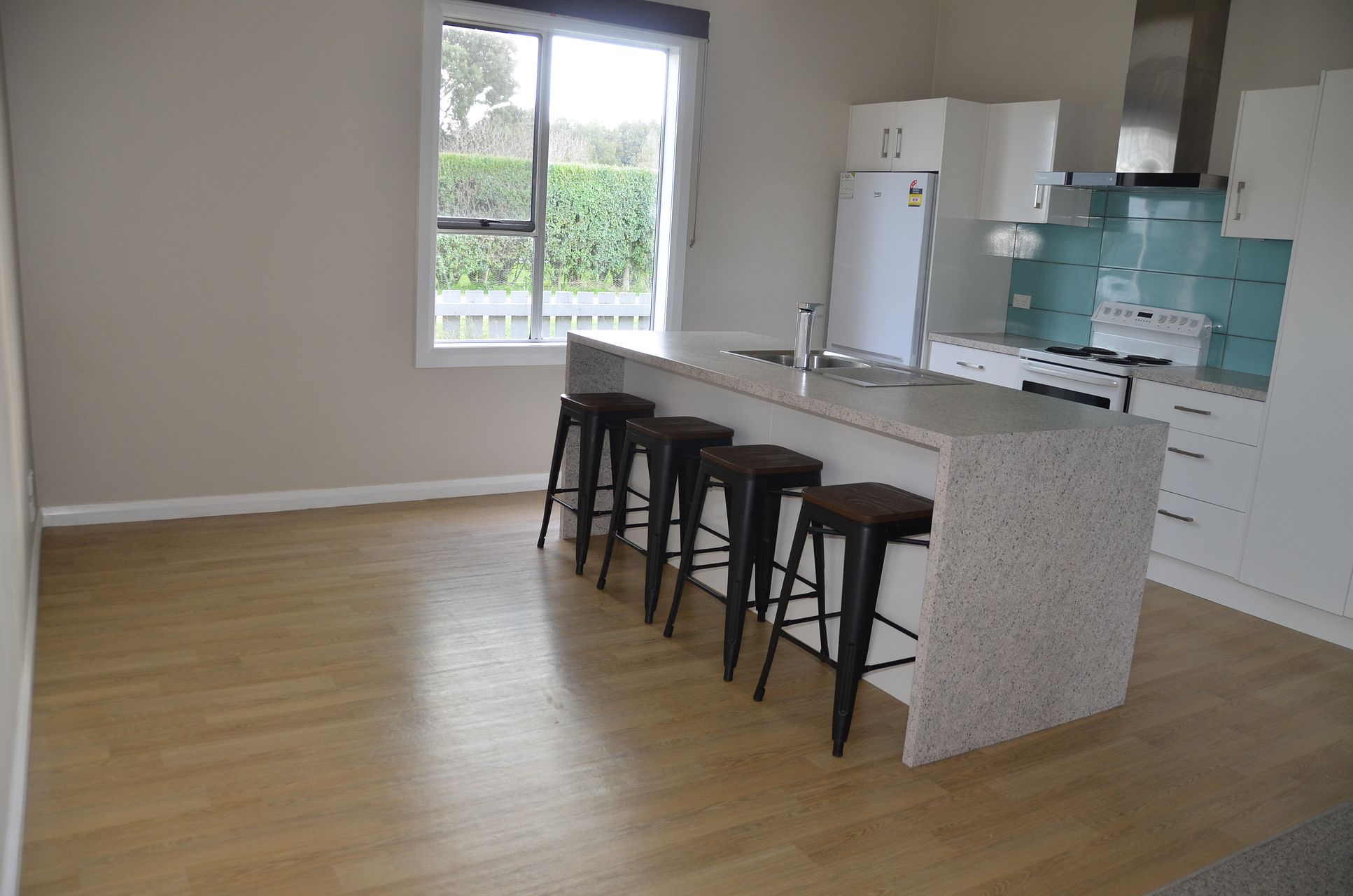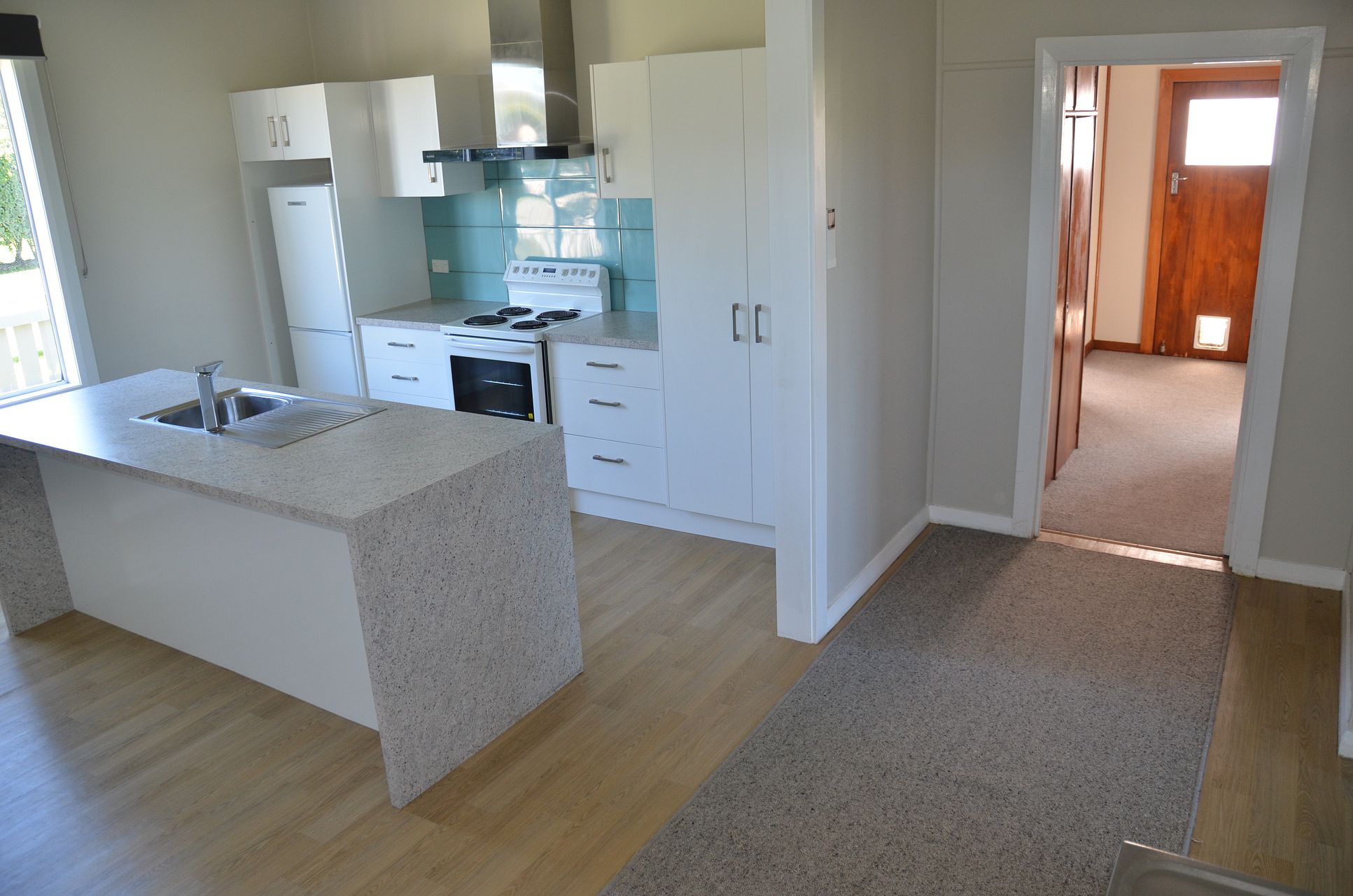 Kitchen with waterfall island bench/breakfast bar. Second bench top with second sink. New in 2019.