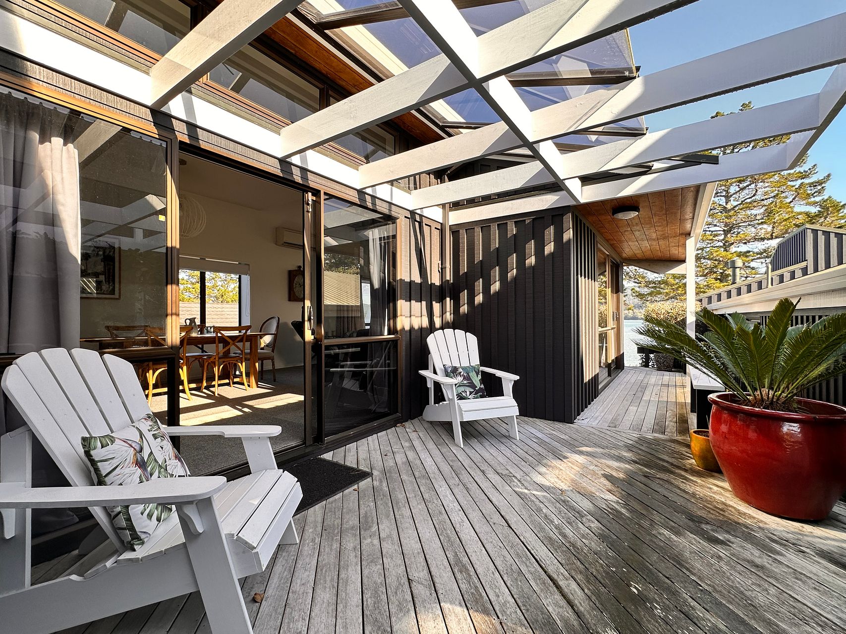 Nestled on the estuary of Pauanui, this modern furnished 3 bedroom, 2 bathroom home at 6b Sheppard Avenue offers a perfect blend of comfort and style. With its air conditioning for those warm summer days, and efficient heating for the cooler evenings, this residence is designed to ensure a pleasant living environment all year round. Each bedroom comes with a built-in wardrobe, providing ample storage space for personal belongings. The property is also Healthy Homes compliant, ensuring it meets the standards for insulation, ventilation, and moisture ingress, contributing to a healthier, more comfortable living space.