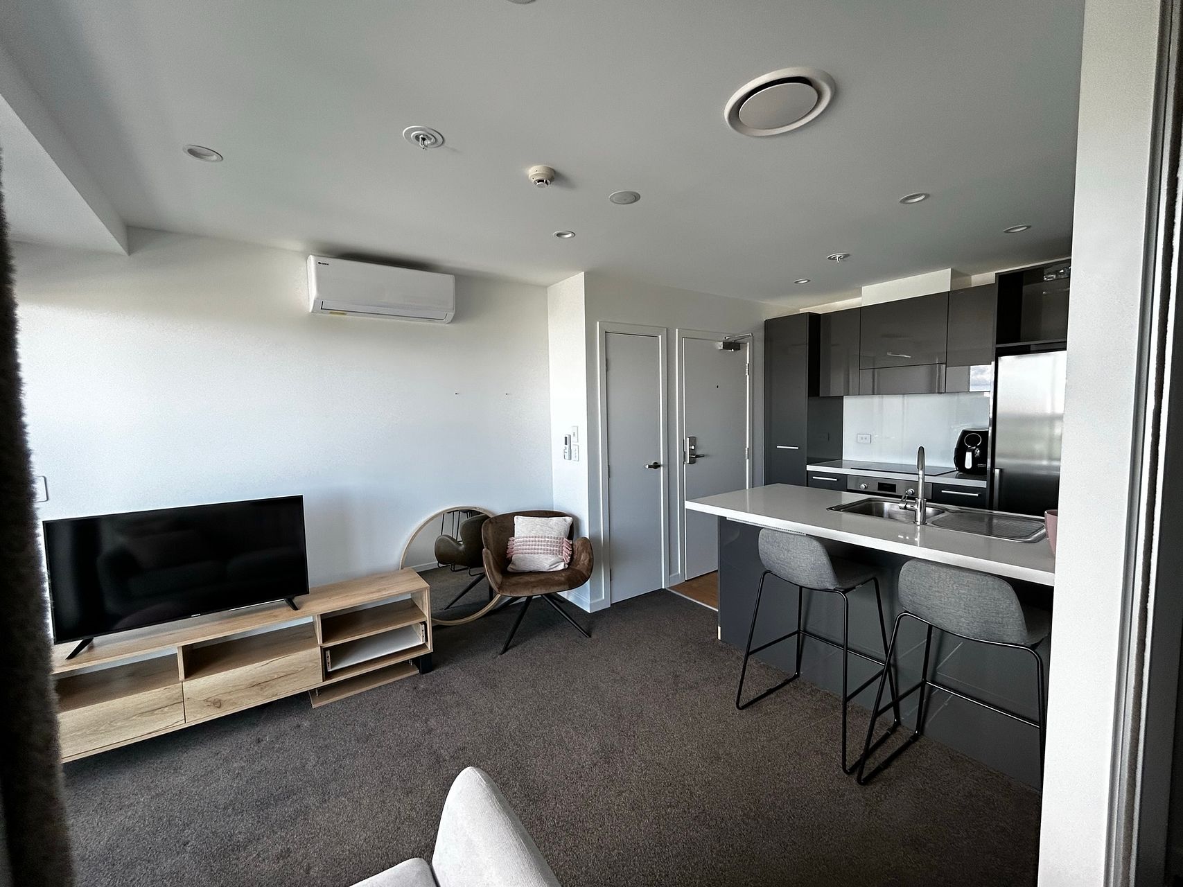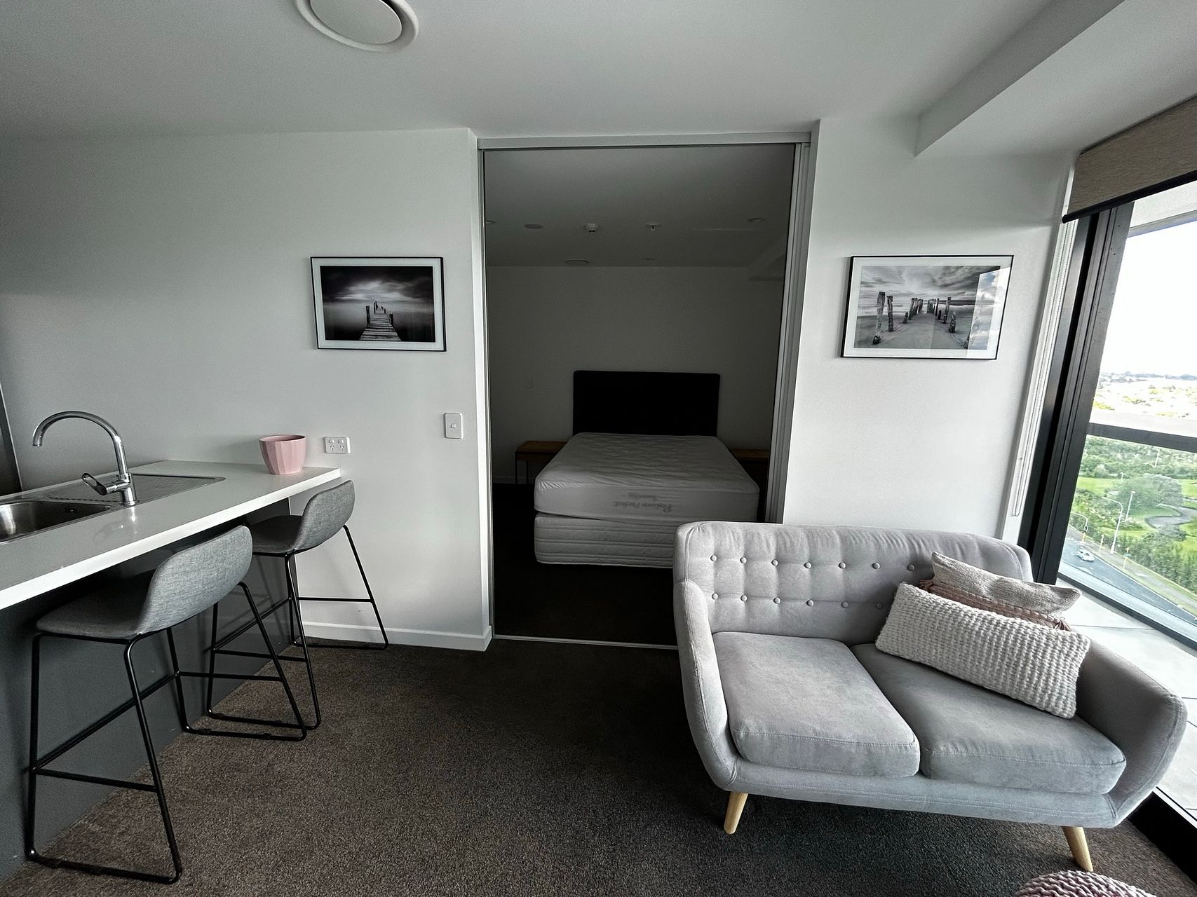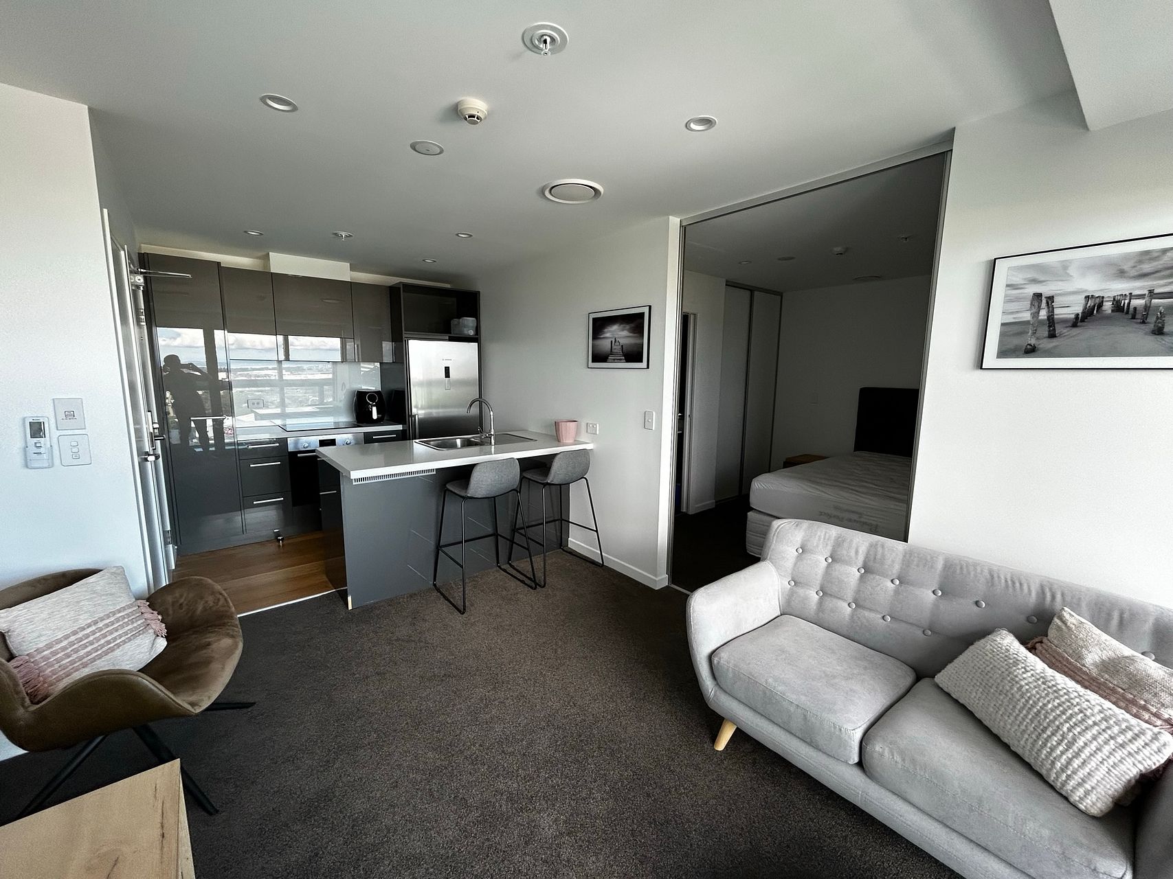 Modern, fully furnished one bedroom, one bathroom apartment in the heart of Manukau City. Great views from the balcony of Rainbows End with the Manukau Heads in the distance. A full size kitchen with quality appliances along with a quality washing machine and dryer for your use.