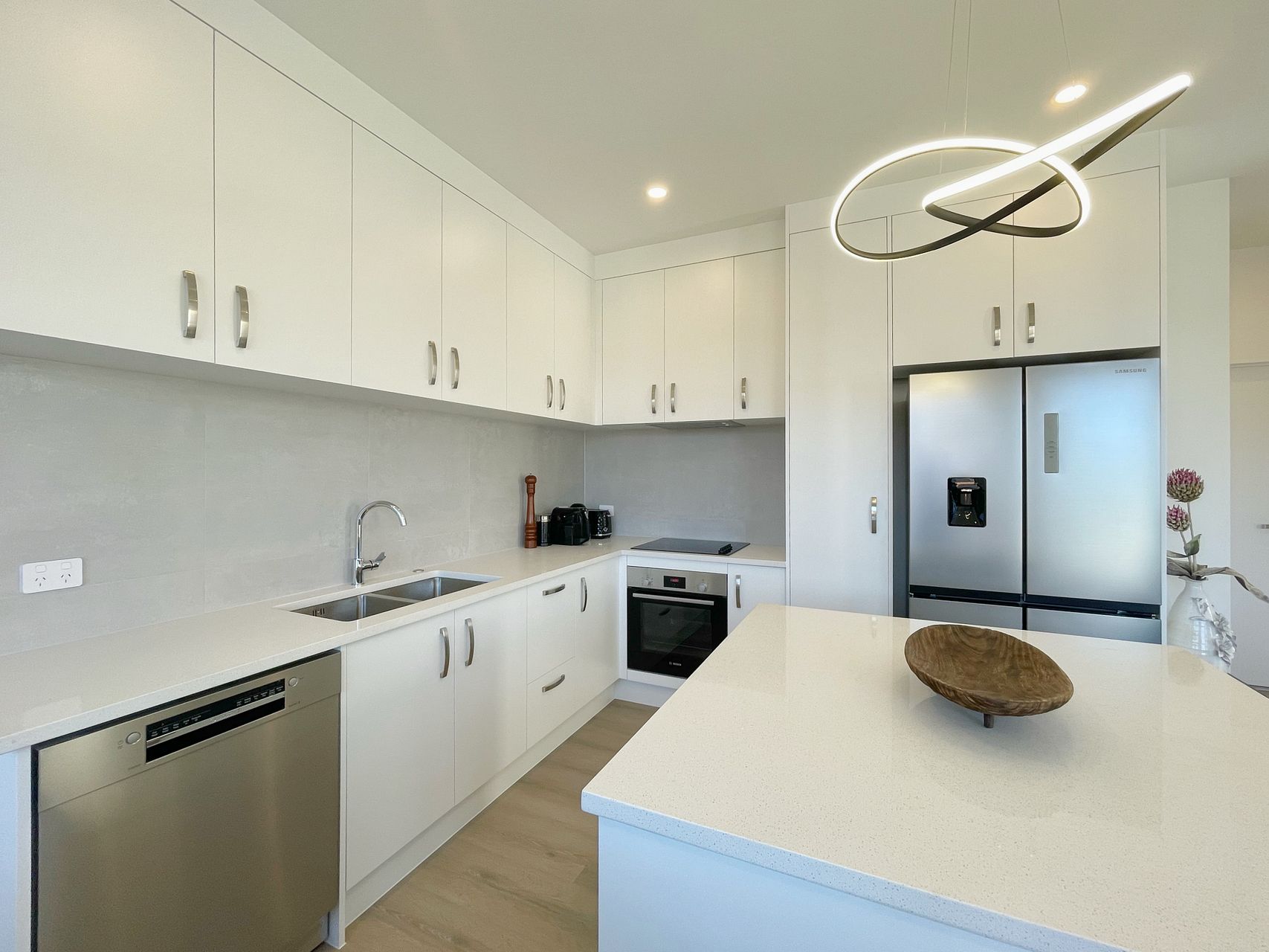 3. Fully Equipped Kitchen – Two-door fridge, oven, rangehood, cooktop, dishwasher, and waste disposer.