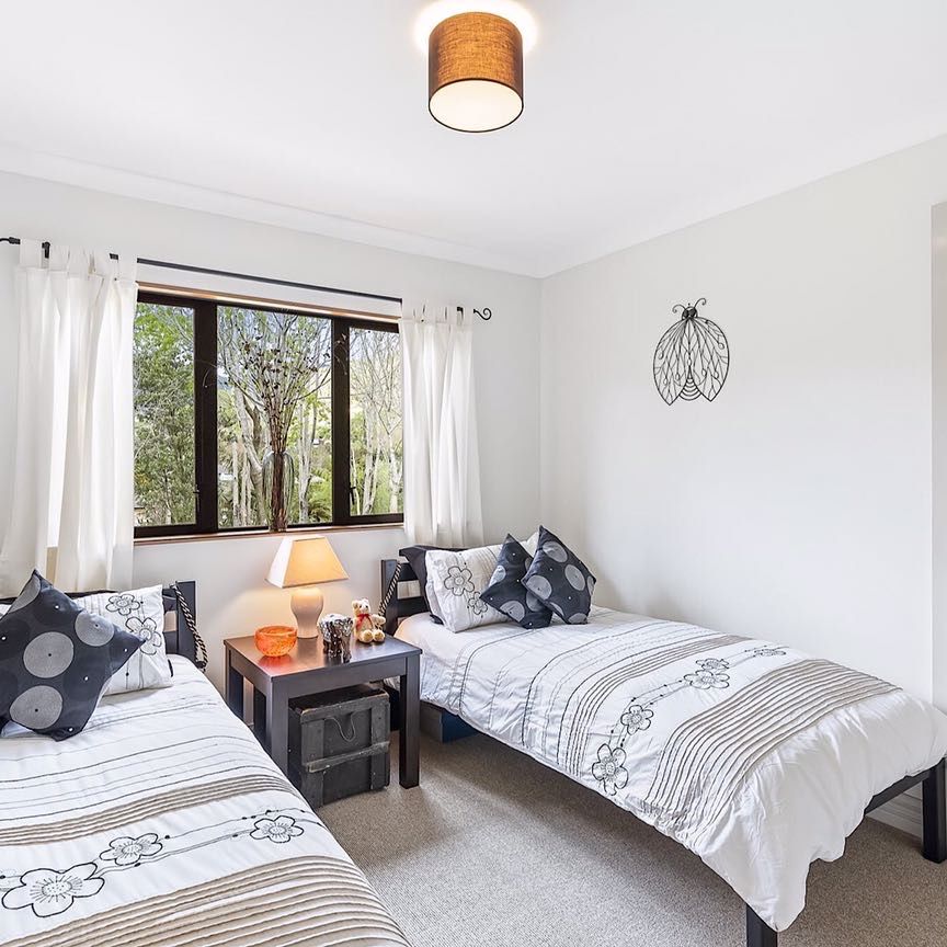 This two bathroom, four bedroom house, sits in a park-like setting with bird life in abundance and no immediate neighbours in sight and yet it is only 5 minutes drive to Paraparaumu railway station and the Coastlands mall. The landlord looks after the garden so no need to worry about mowing the lawn. Just sit out on the expansive deck and enjoy the peaceful and private surroundings filled with trees.