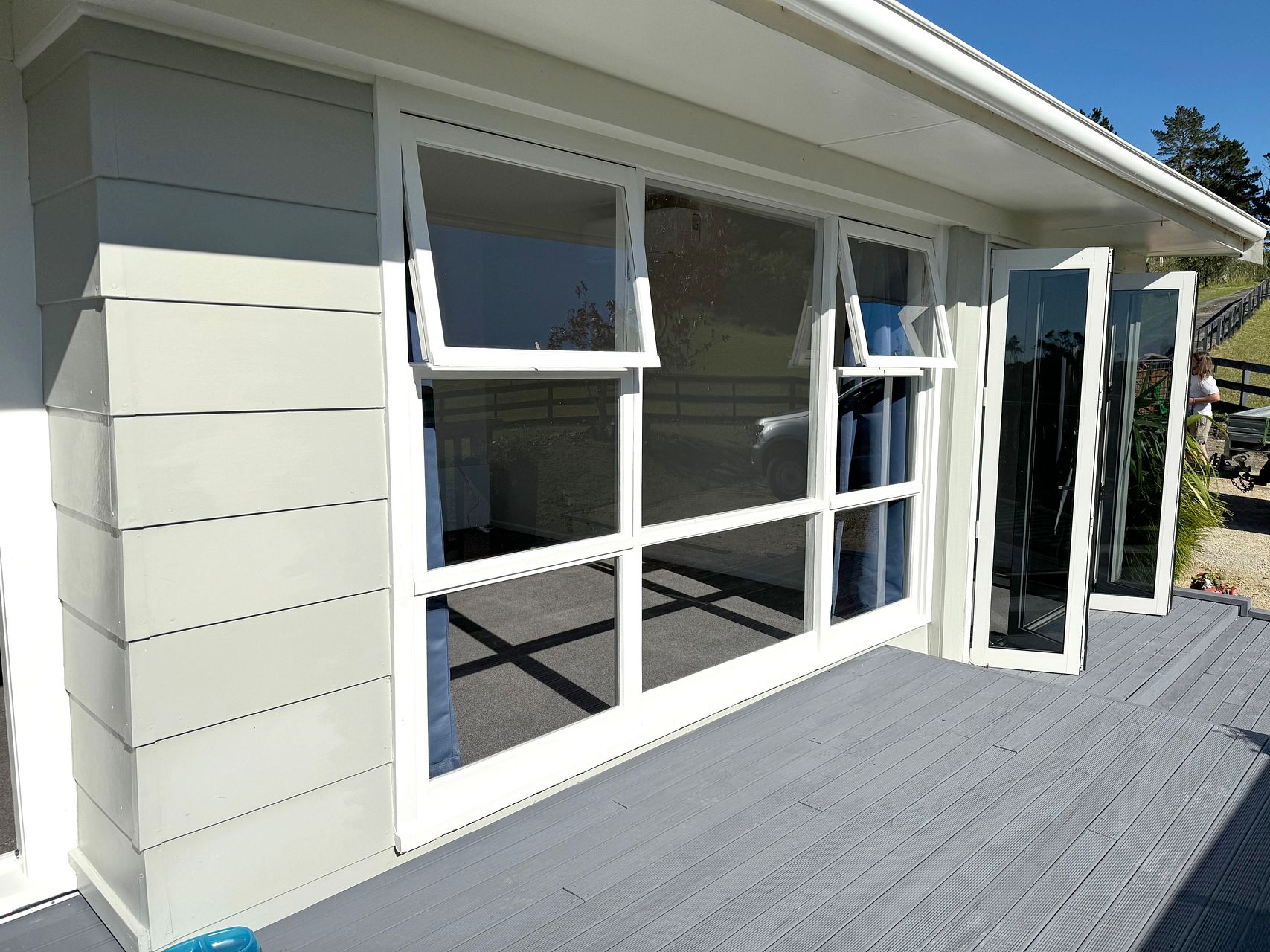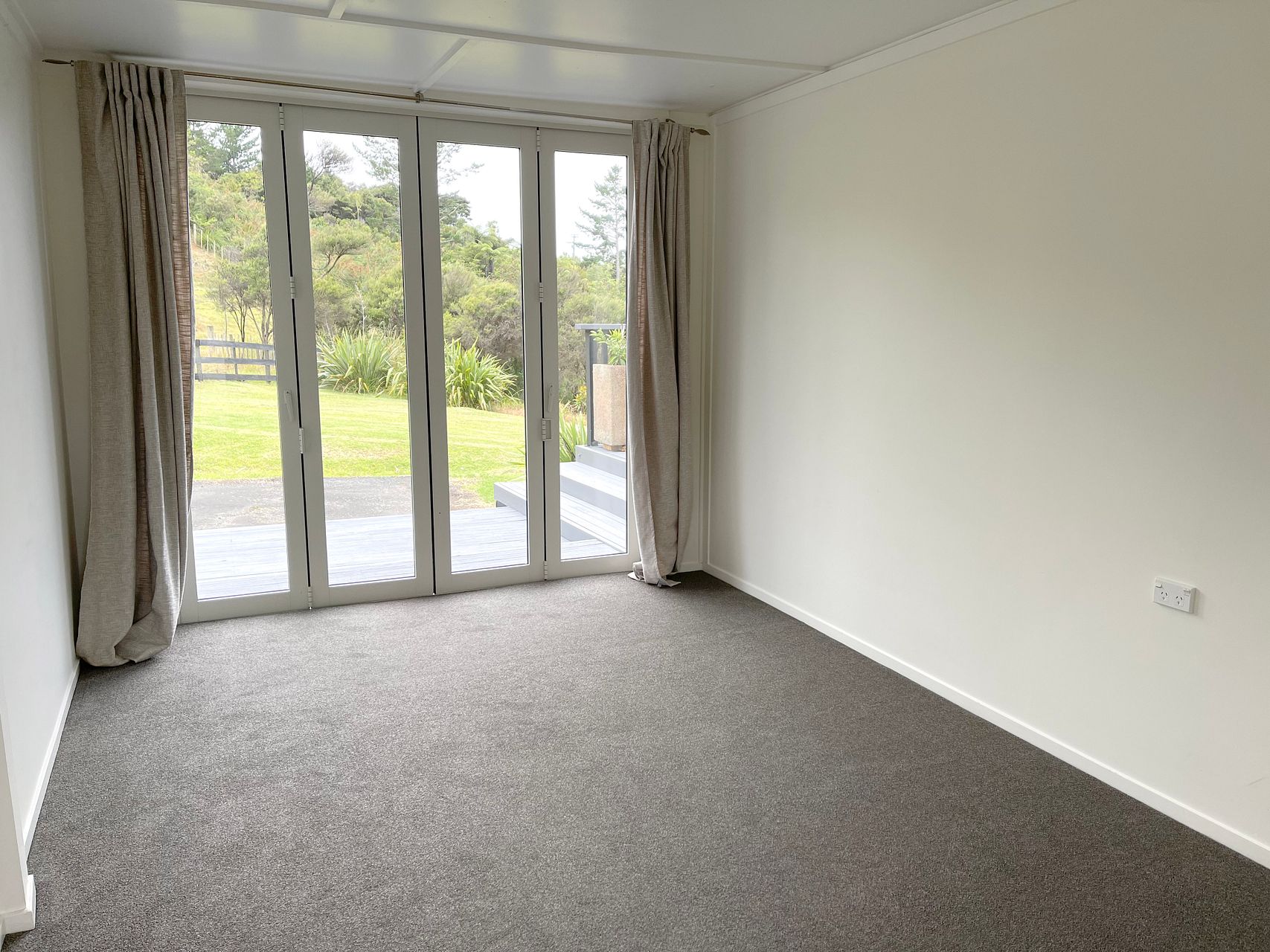 Main bedroom is north facing, it would fit a king bed, with bifolds that open up to the deck. Second bedroom also has large north facing windows with a view to the paddock. Third bedroom fits a single bed or desk and faces east and south with a rural outlook.