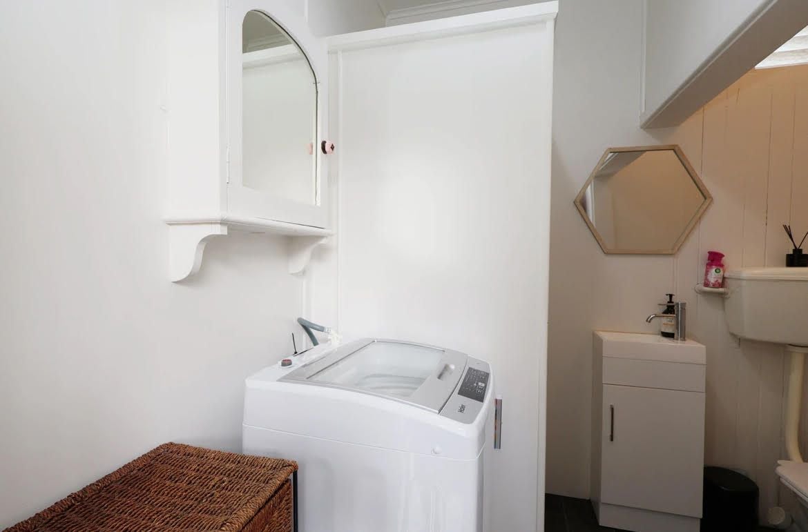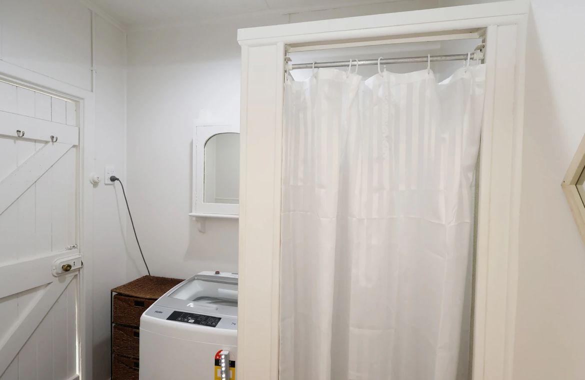 Bathroom comes with shower and space for the washing machine.