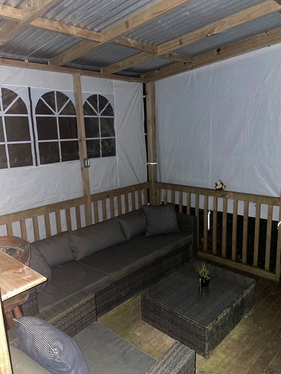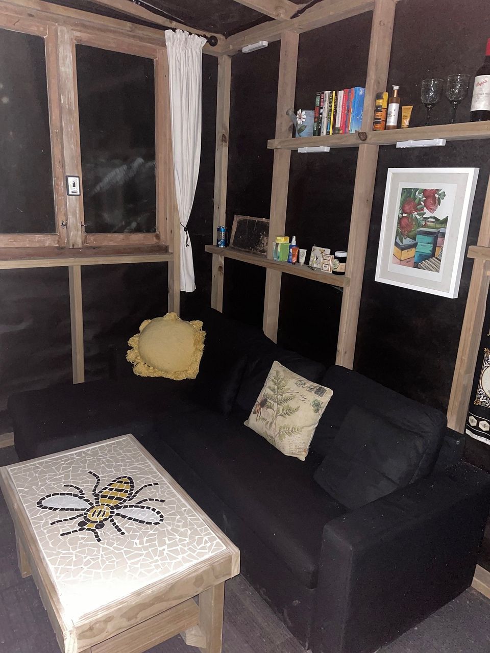 A wee little cabin built on 30m2 with a single sleepout room available plus a deck to relax amongst the native bush and a creek running nearby. Own separate access driveway with off street parking (uncovered). Beehives a short walk away and private access tracks through 10ha property including covenanted bush. Lookout on top of hill.