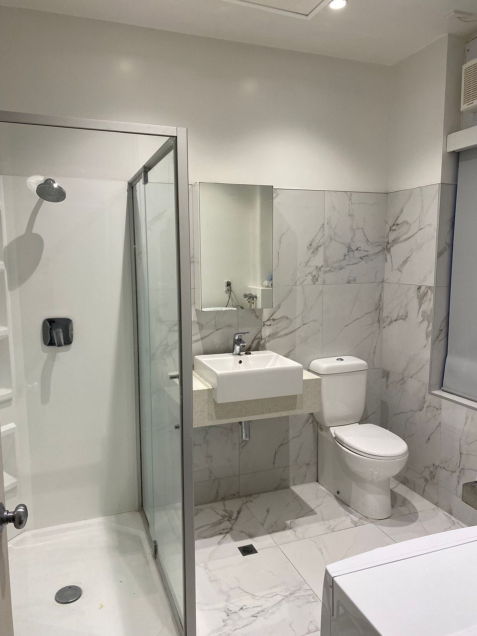 Modern and spacious bathroom with full laundry facilities.