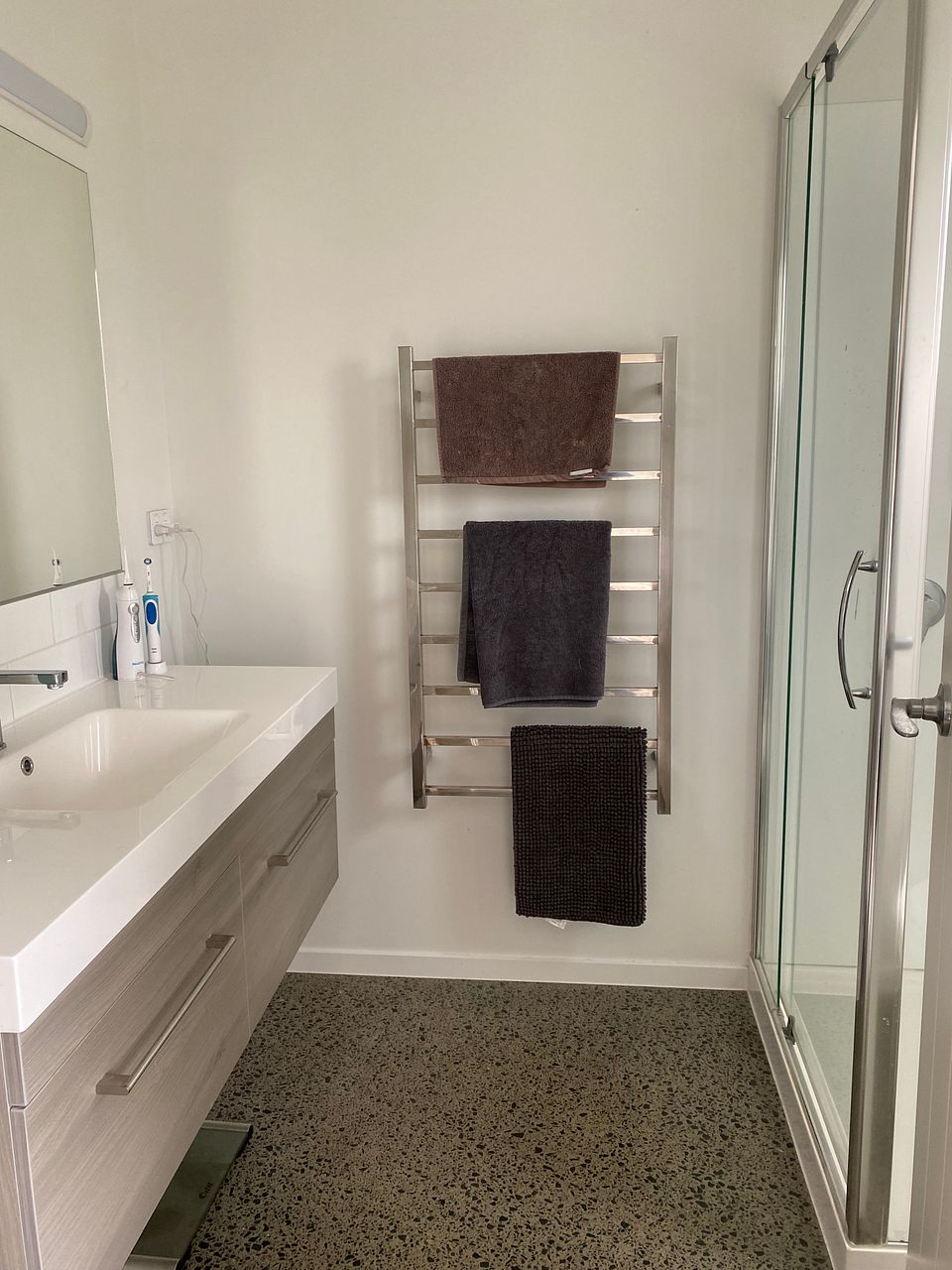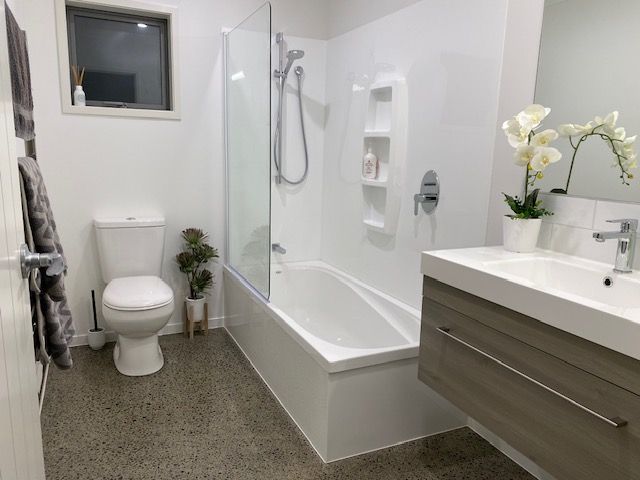 Polished concrete floors in living, dining kitchen & bathroom areas plus double glazing throughout help make this a cosy home
