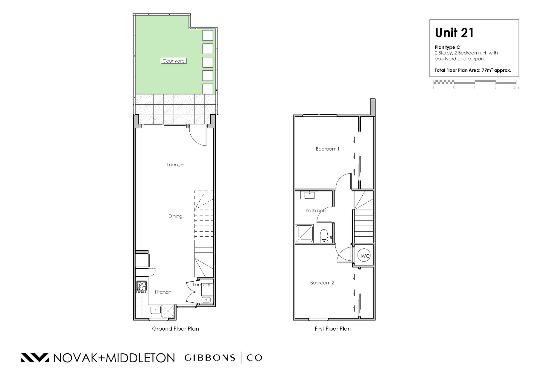 Downstairs is an open planned kitchen and lounge, with a north-facing, low maintenance courtyard. Kitchen comes with Fisher & Paykel appliances and a washing machine in the laundry room.