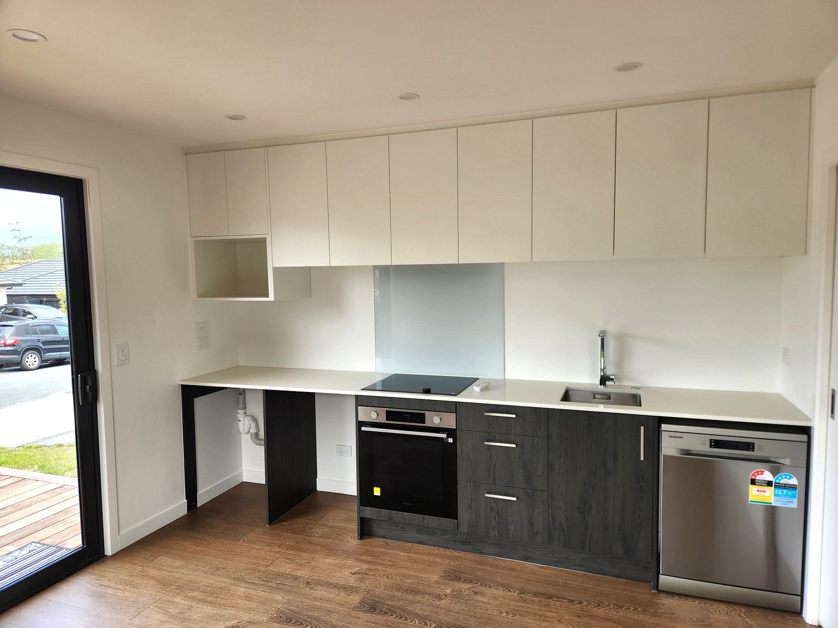 We've just gotten the keys so there are a few things left to do; a new fridge will be installed; the builder will finish the fence and curtains will go up soon.