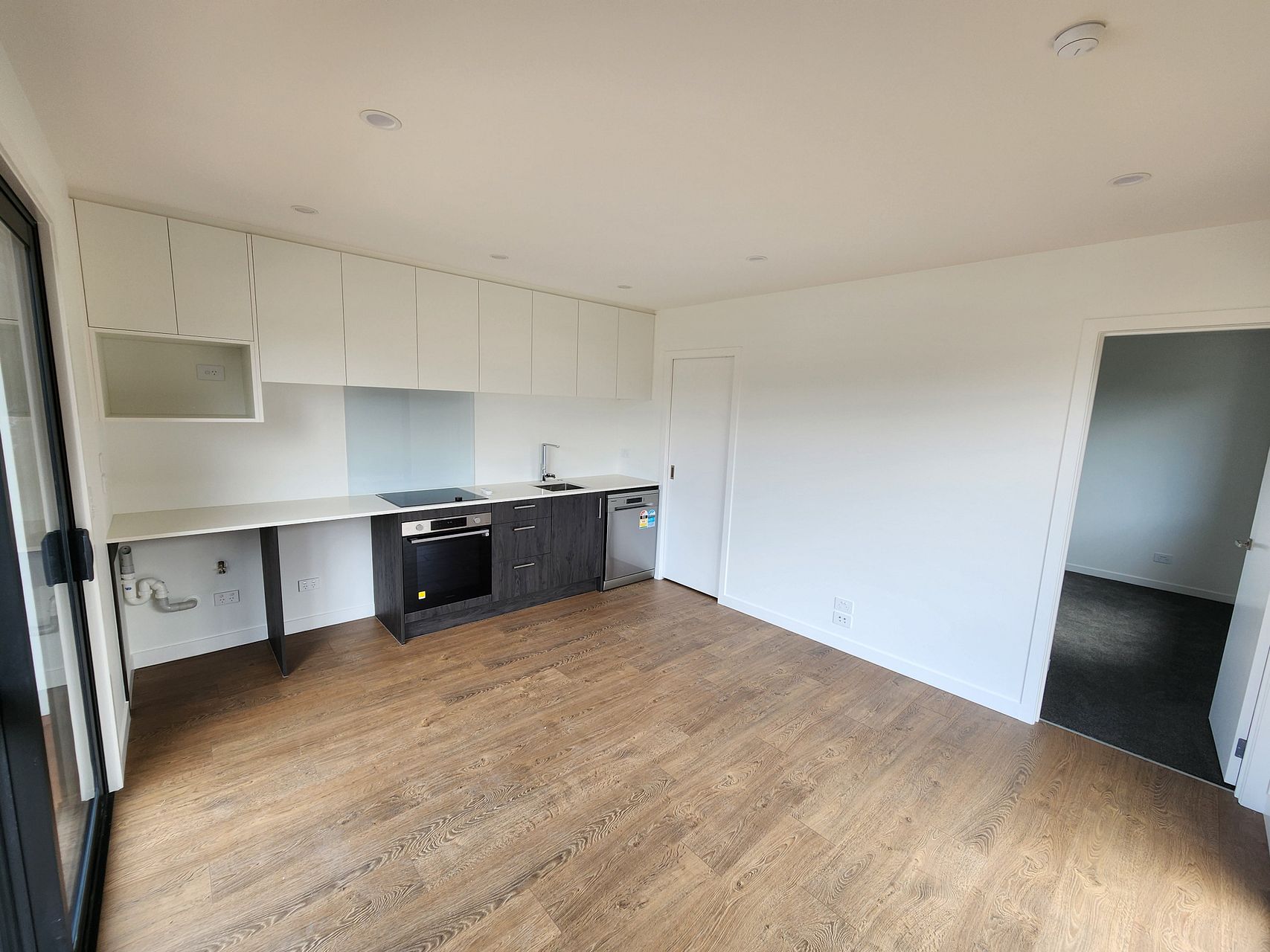 Newly built one bedroom flat, available now. Includes fridge, dishwasher and a space for a washing machine and microwave.