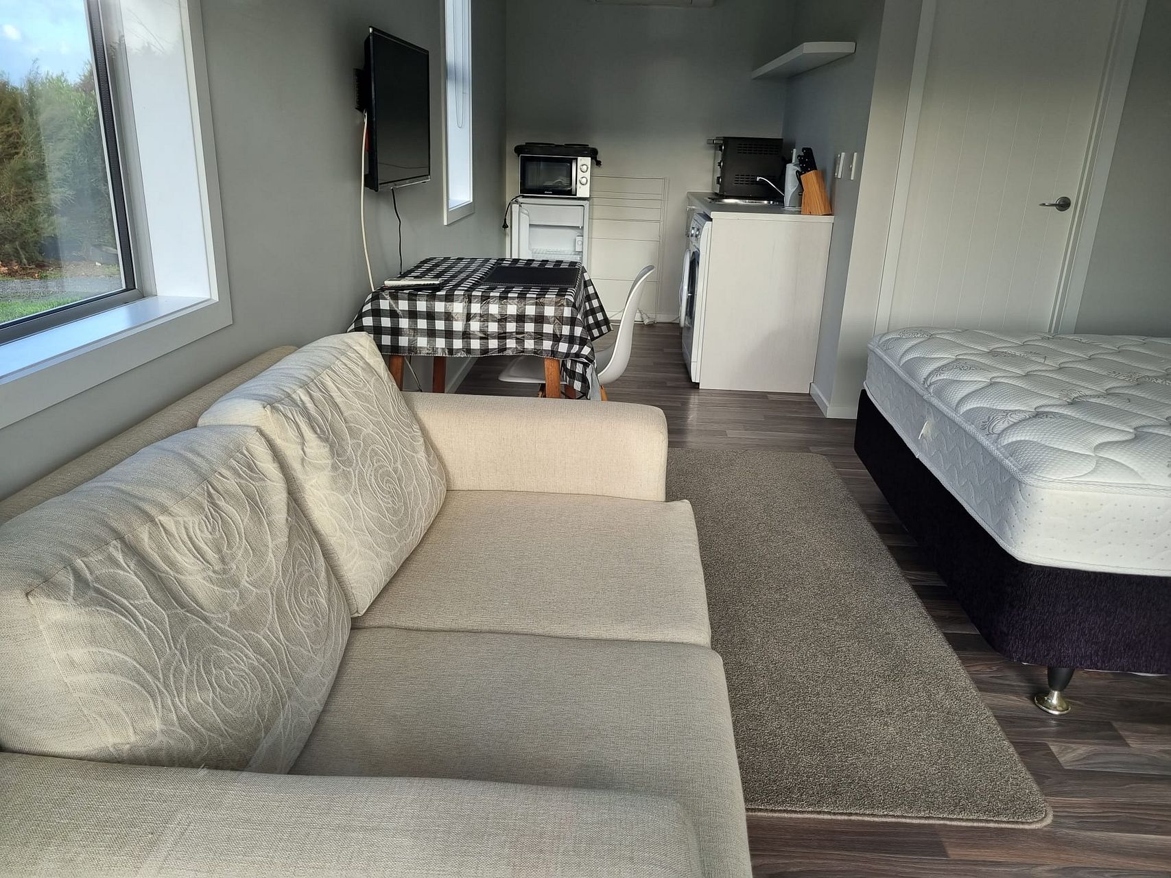 Up for rent is our immaculate studio unit that is attached to our house. It is fully insulated with heat pump and fully furnished.