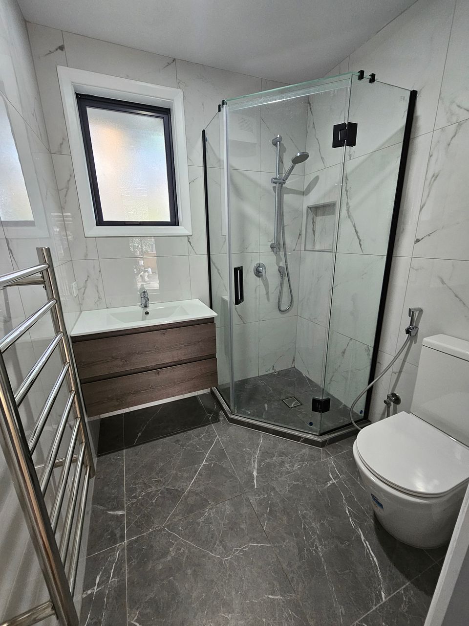 -- 1.5 Bathroom, Modern bathrooms adorned with sleek tiles, ensuring both convenience and easy maintenance