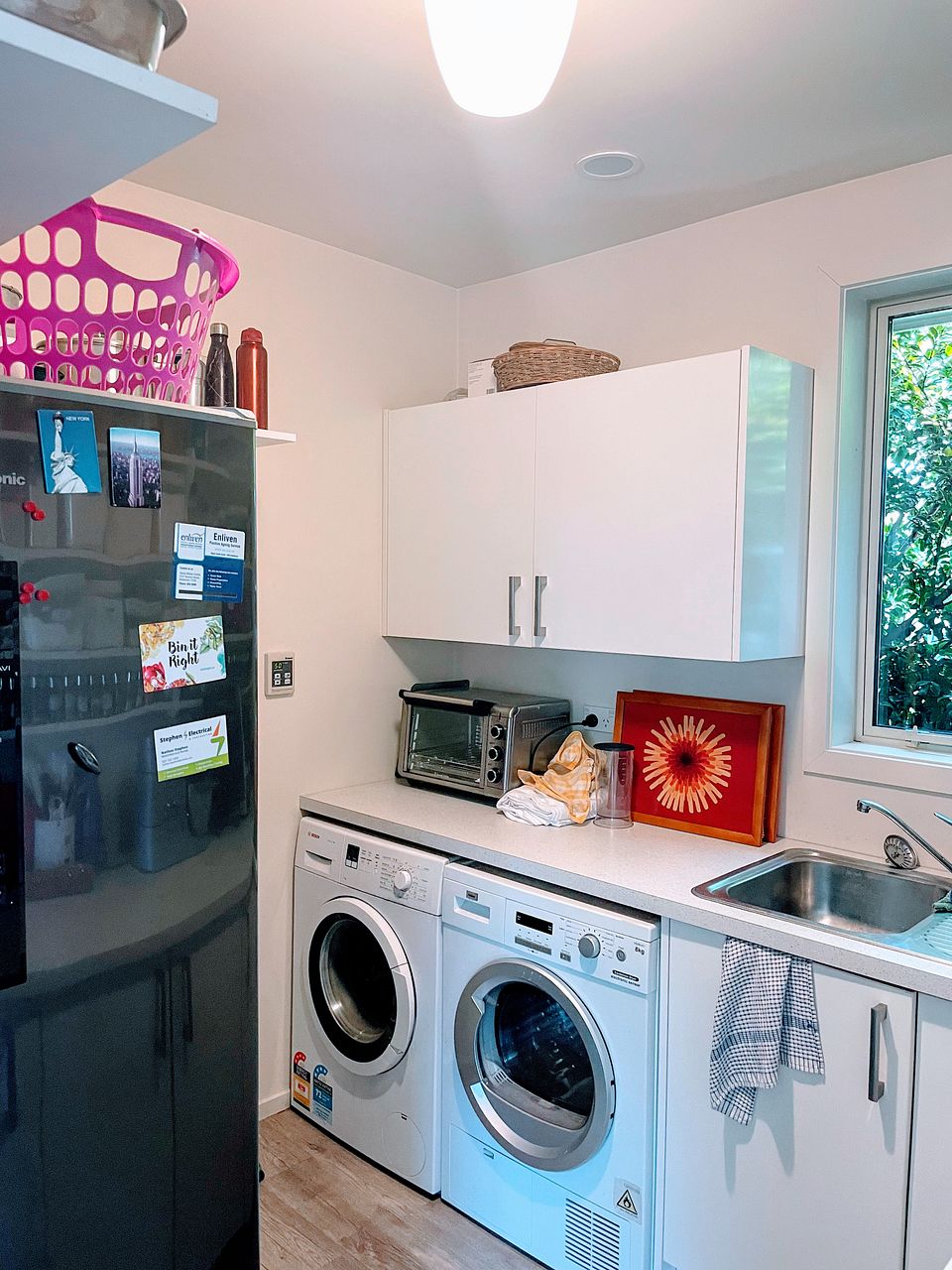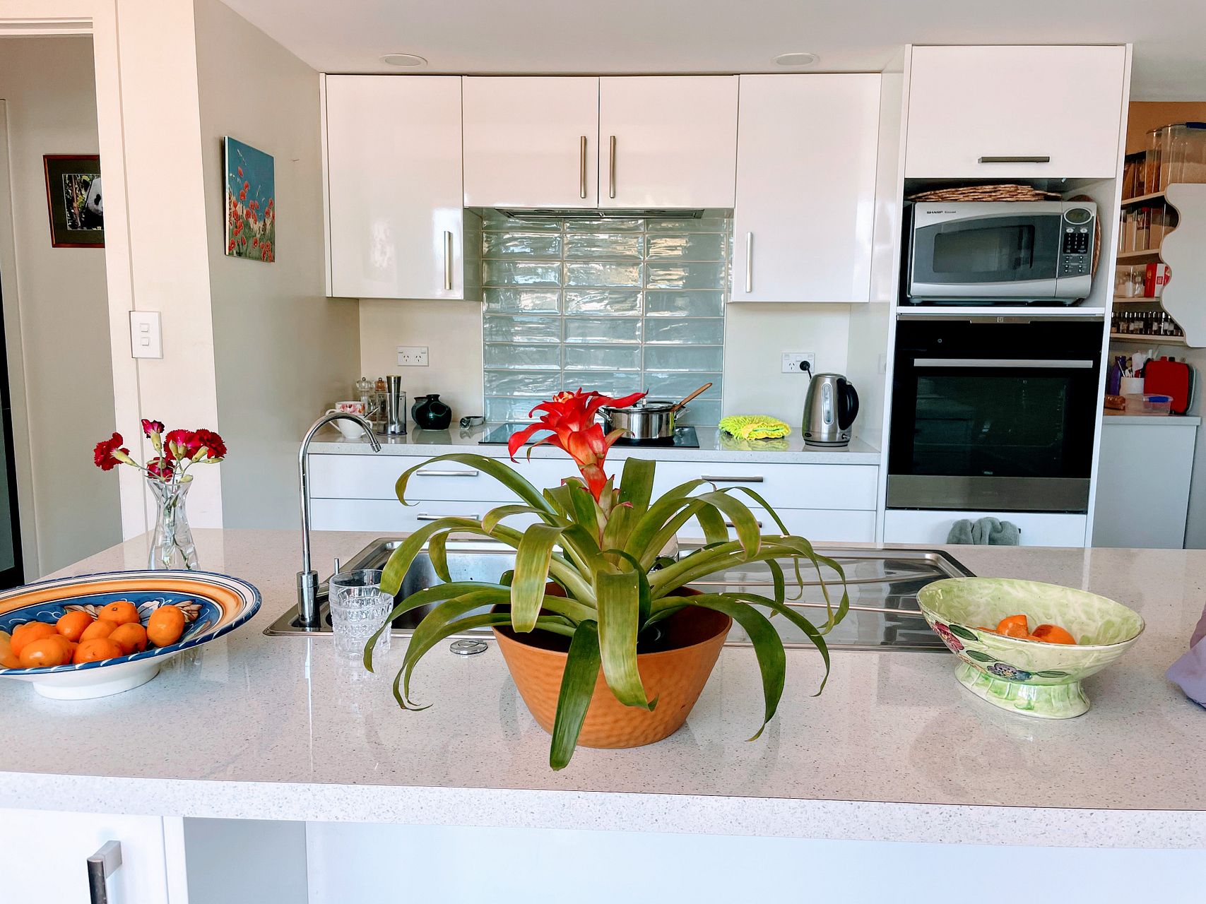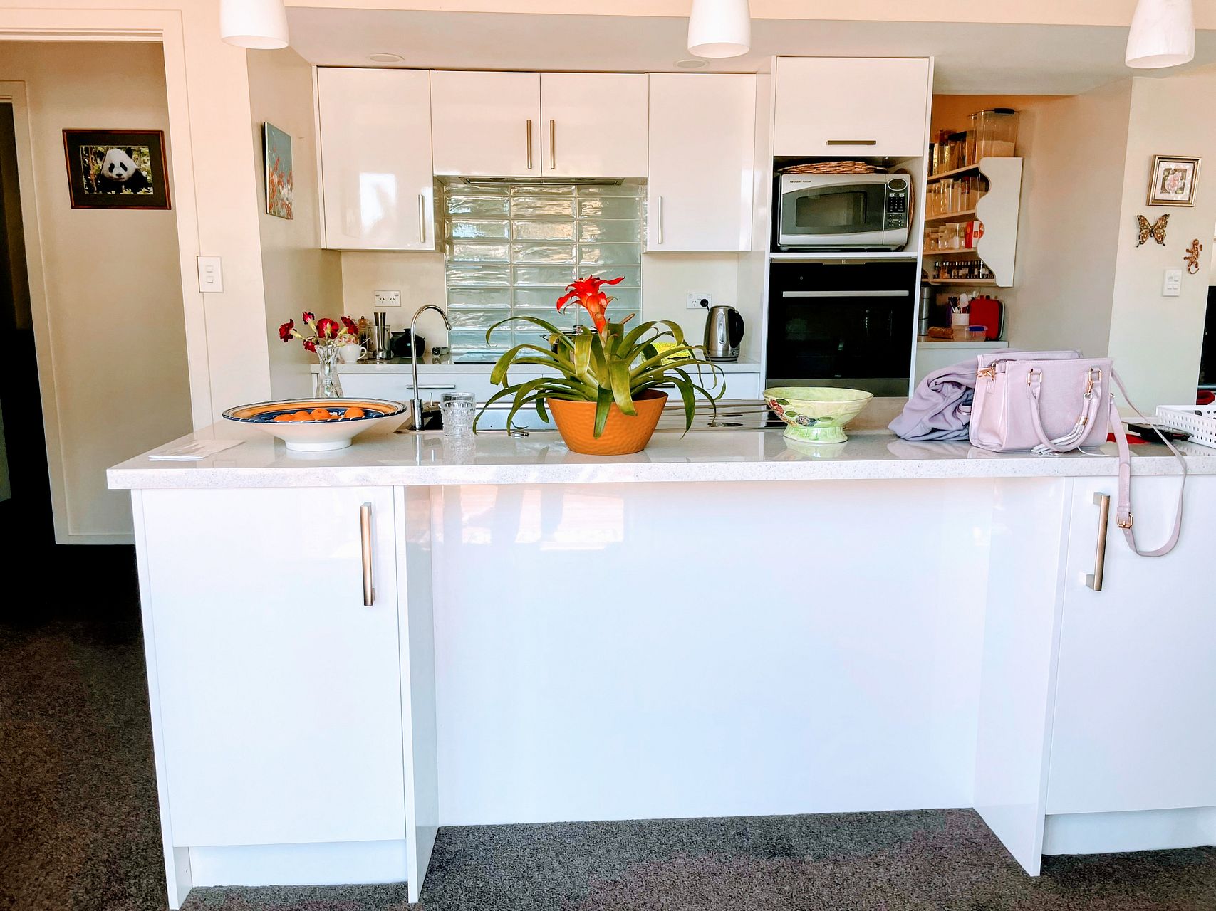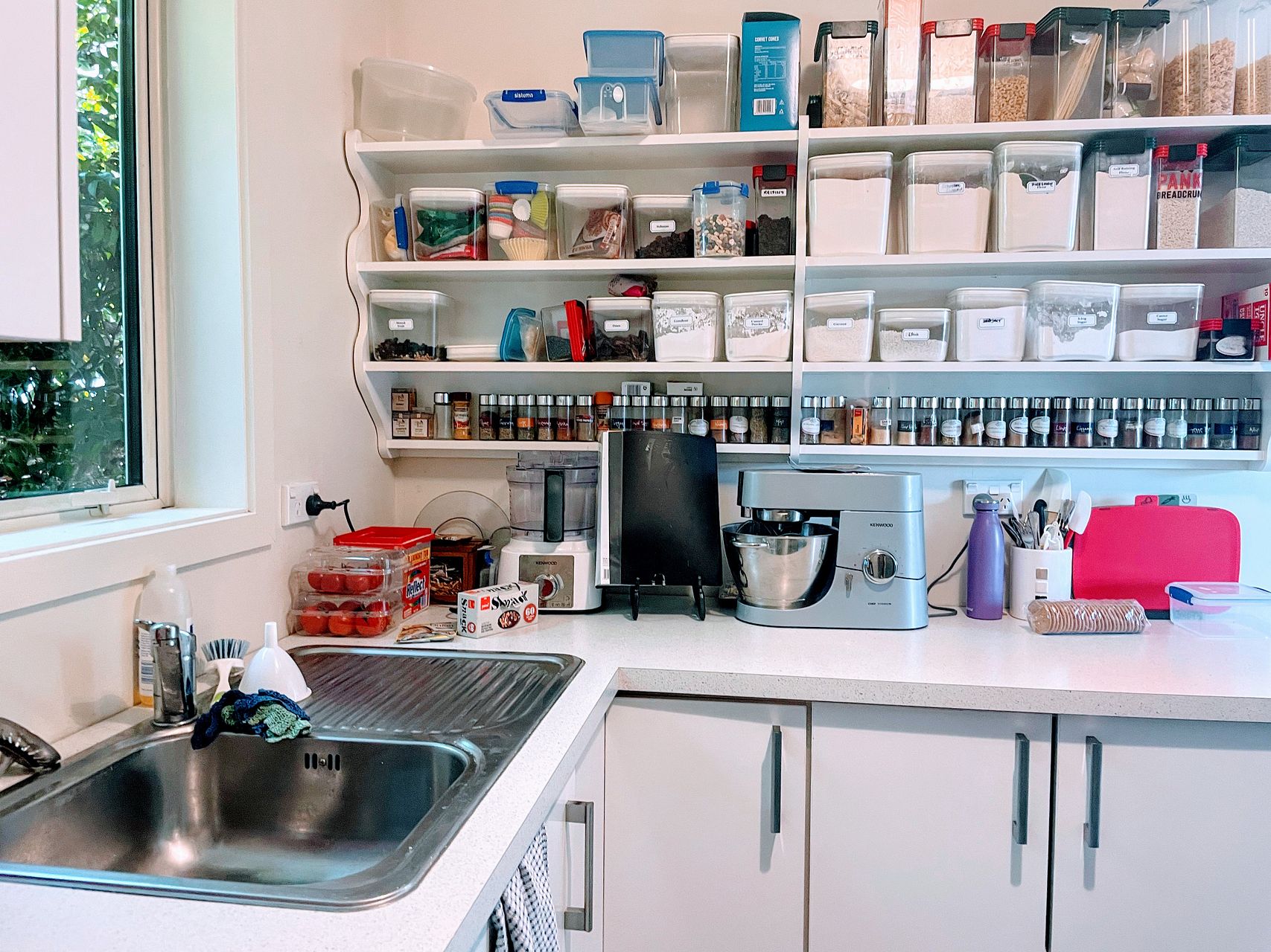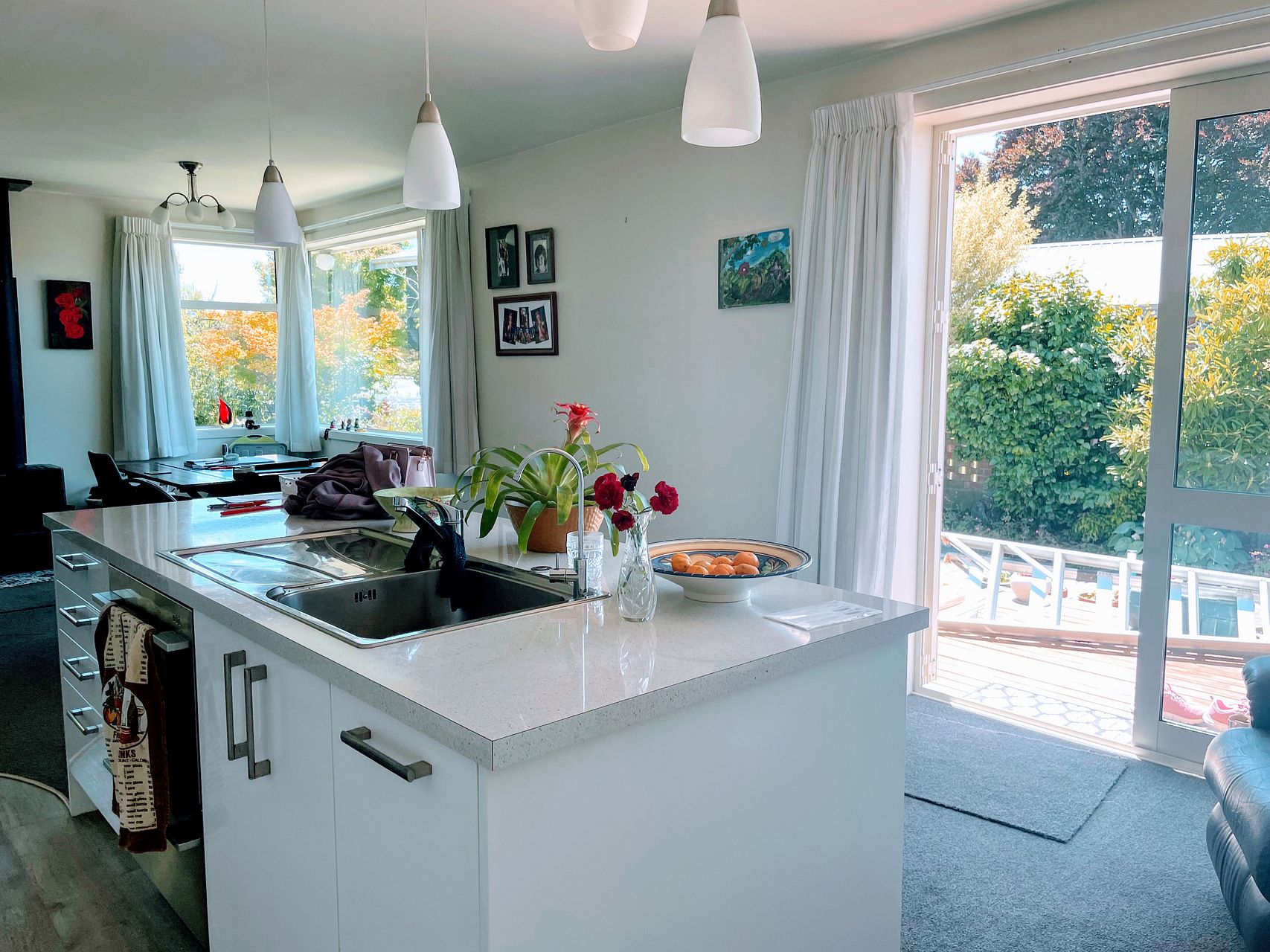Modern open plan kitchen with a pyrolitic self-cleaning oven, waste disposal unit AND a butler's pantry. Open plan living area.