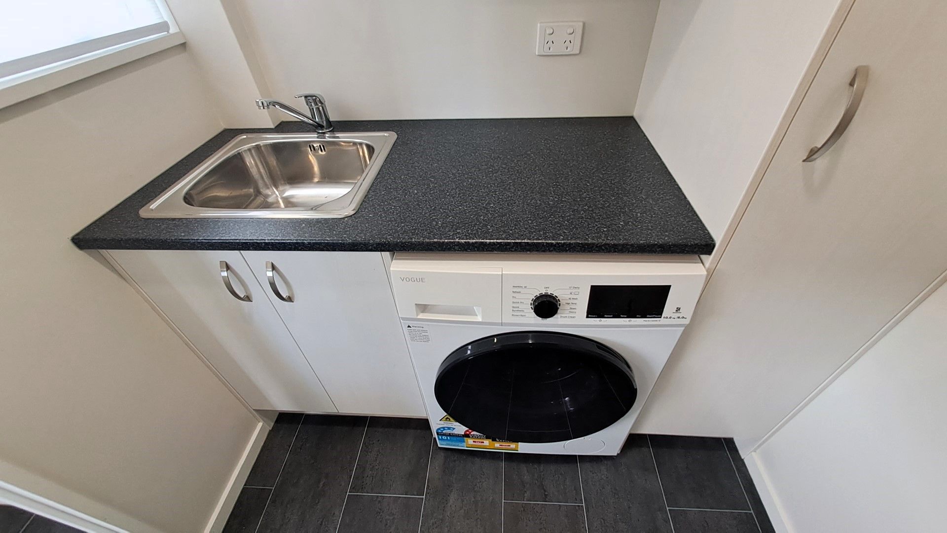 Modern kitchen features fridge, dishwasher, microwave and good storage and plenty of bench space. Separate laundry with washer/dryer combo, bench and sink with plenty of storage.