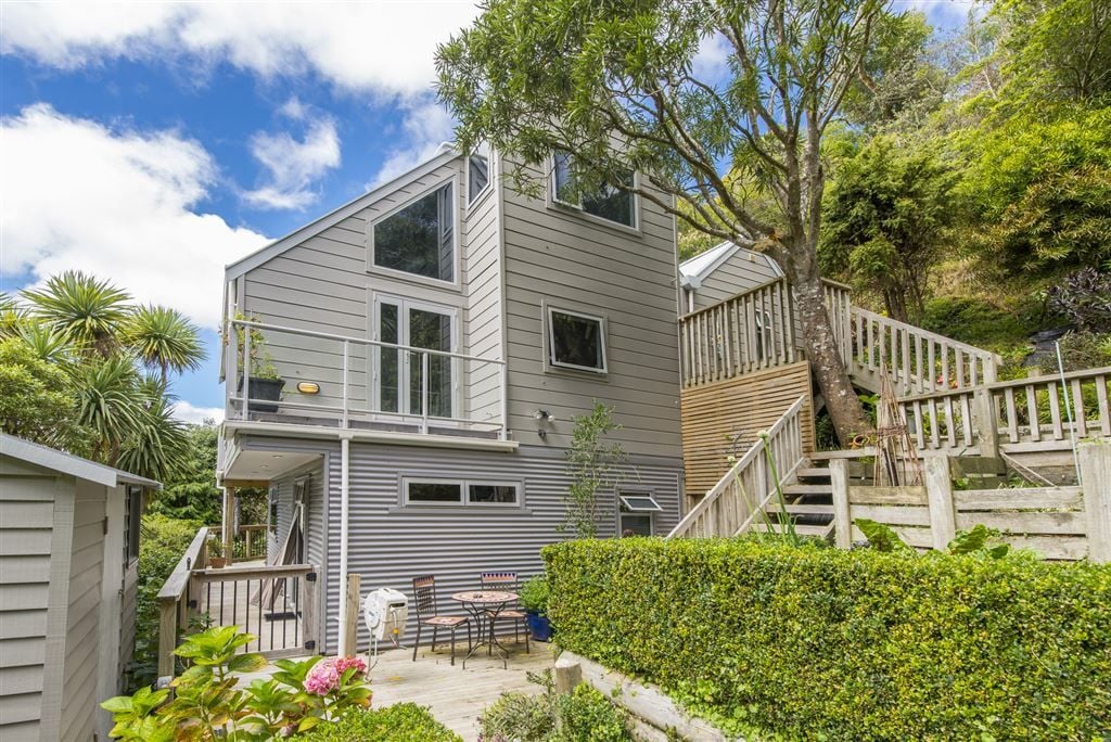 Access – a secluded haven up a wooden stairway through native bush