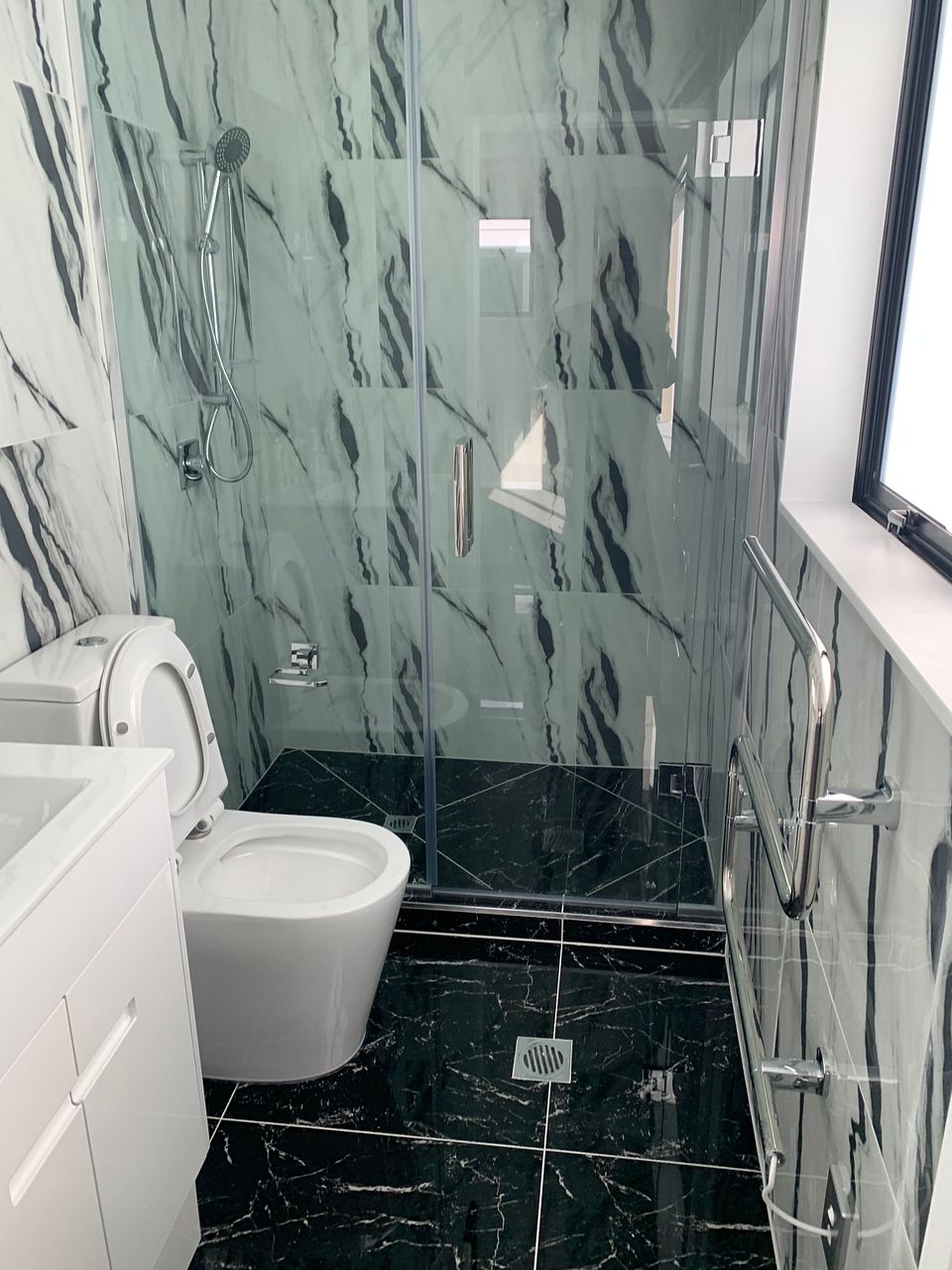 * Tiled bathroom with modern showers